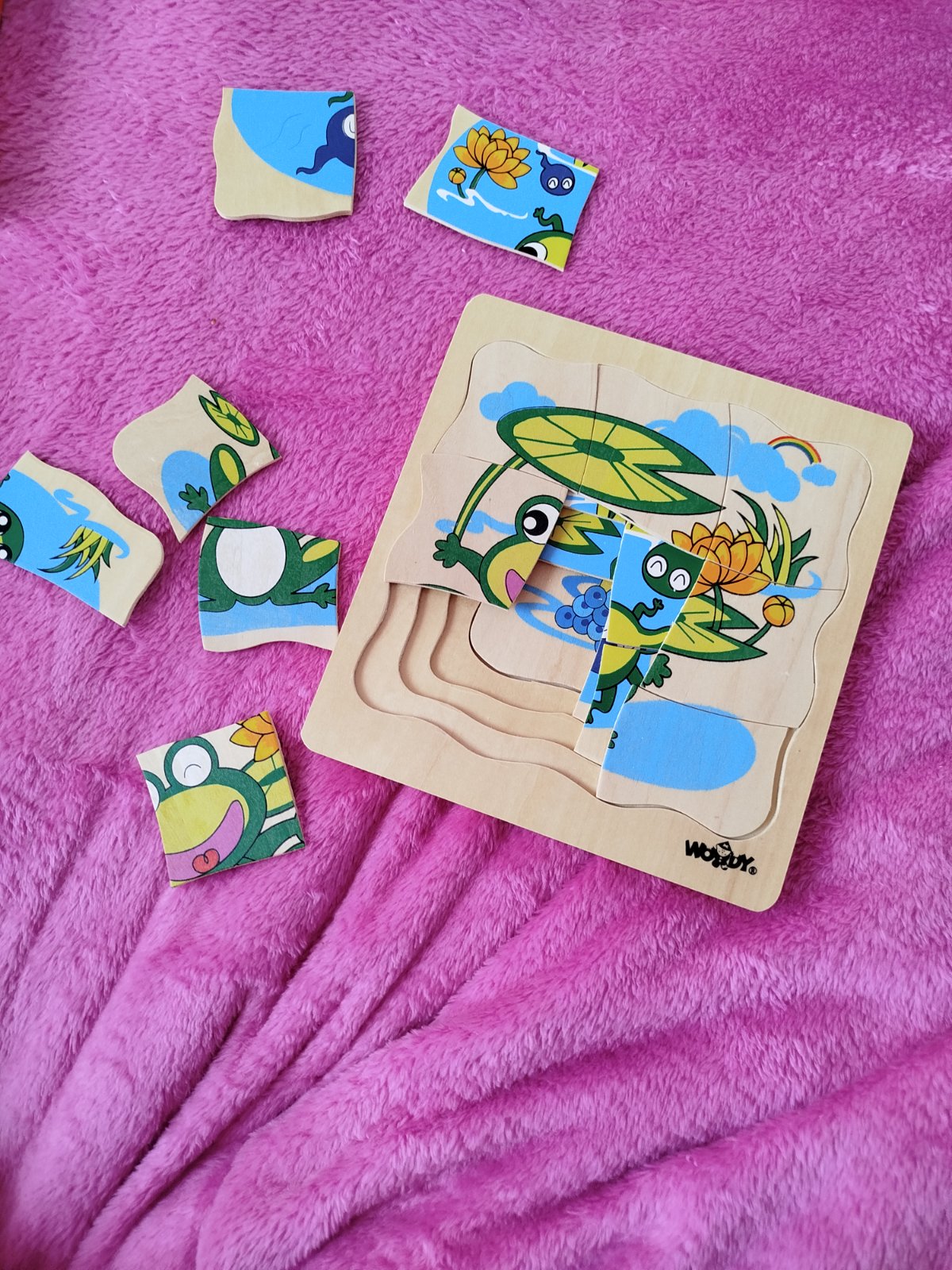 Viacvrstvové drevené puzzle - vývoj žaby