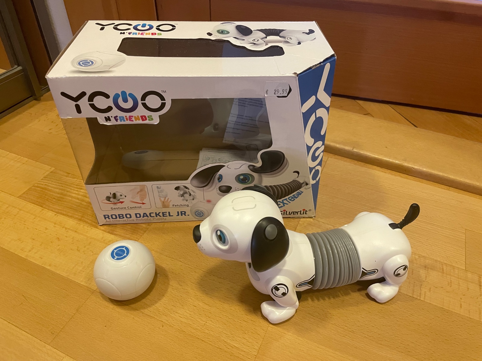 Na baterky, vydáva zvuky, havká, svietia mu oči, pohybuje sa za loptičkou. Plne funkčný. V originálnom balení. 15€ bez poštovného. Posielam iba doporučene.