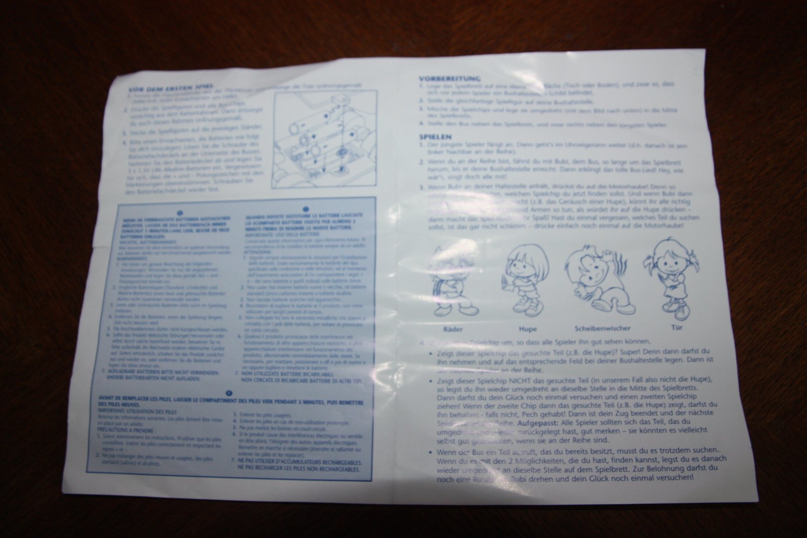 Spolocenska hra pre 2-4 hracov od 3 rokov. Jeden zeton sa stratil, je len dorobeny - vid foto. Pravidla v nemcine. Na 3 tuzkove baterky - nie su v cene.