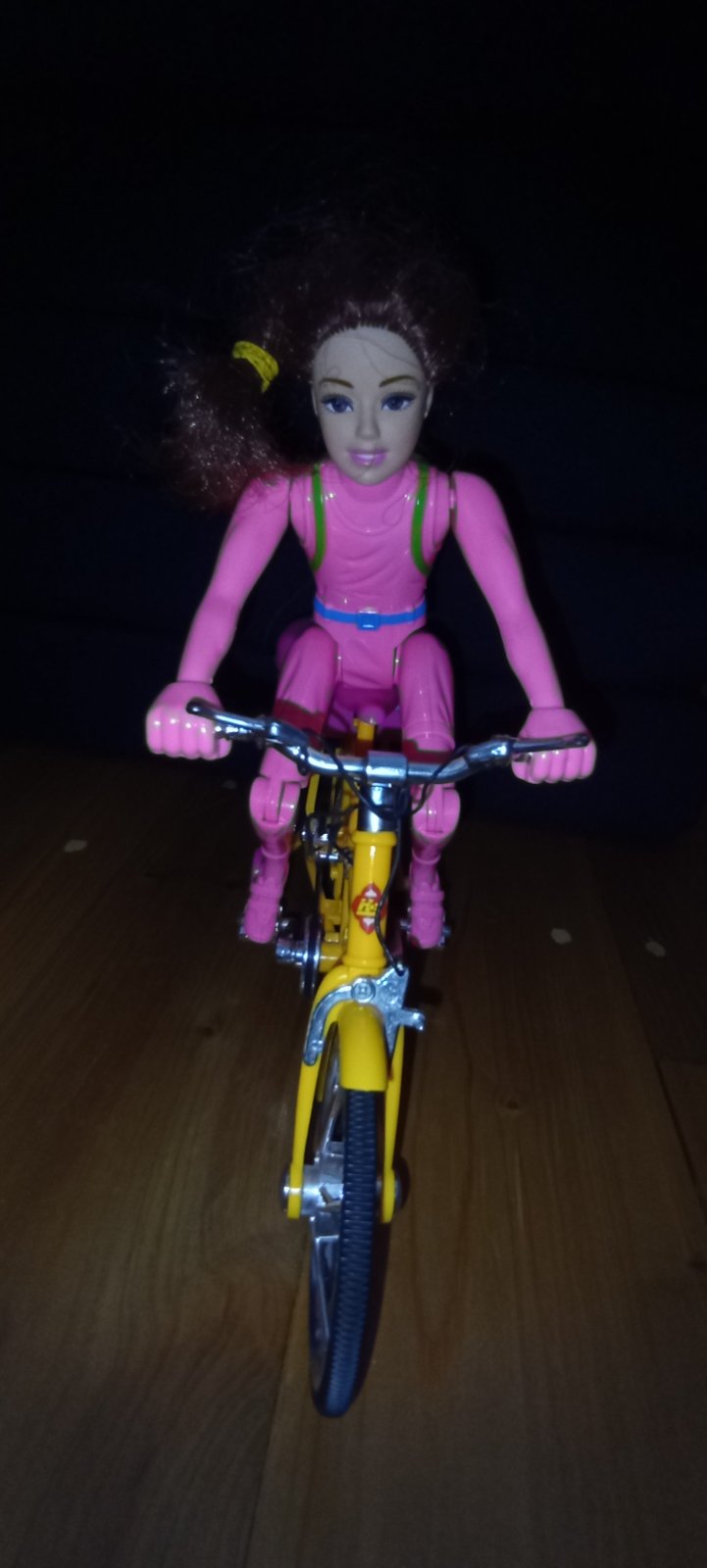 Predam barbie na bicykli, po zapnuti hra a pohybuje sa