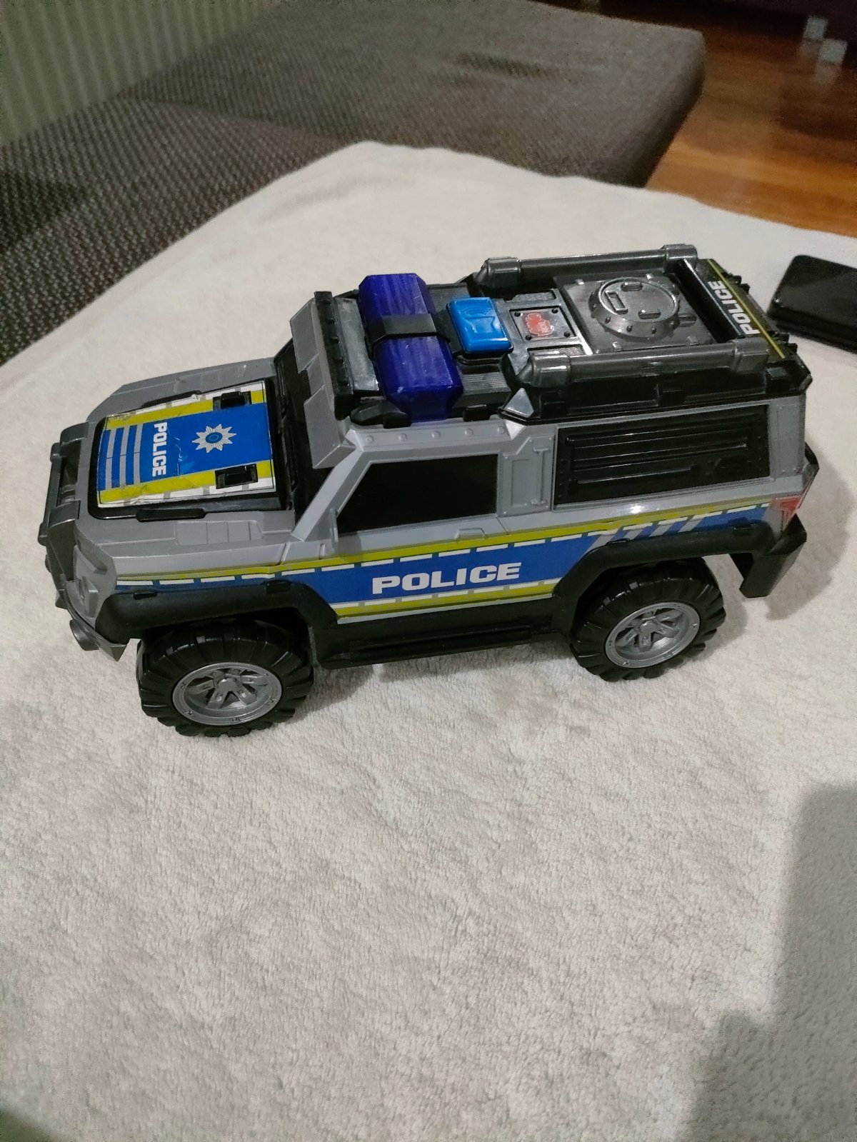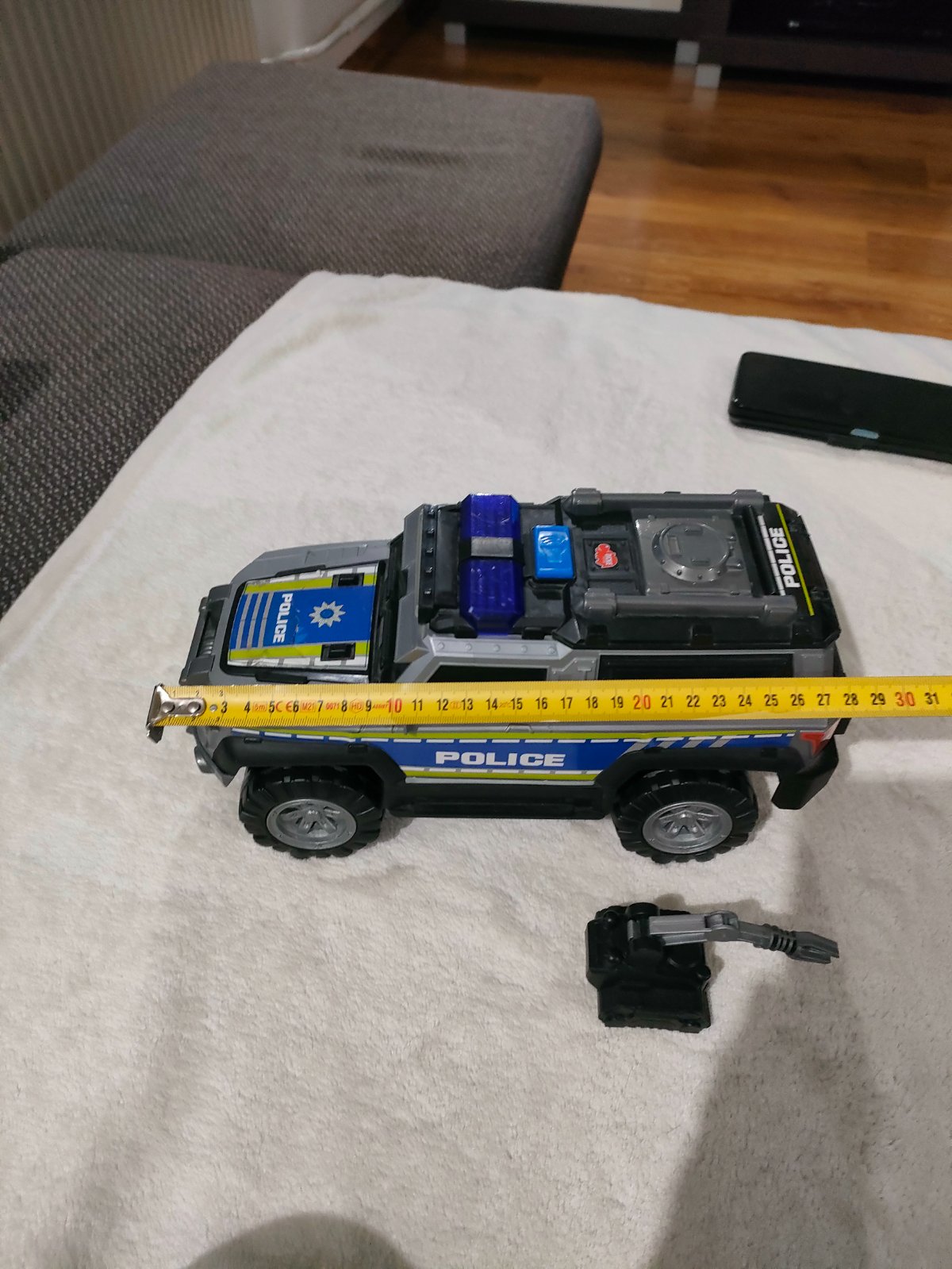 Predám auto 28 cm dlhé. Vydáva jemný zvuk, bliká a vzadu na otvárací priestor. Nepoškodené.