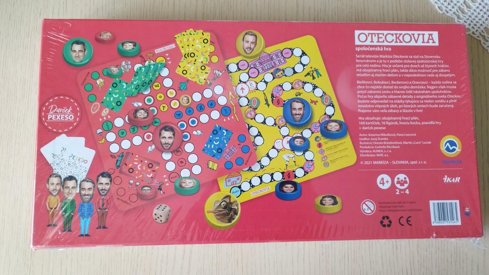 Obľúbený seriál televízie Markíza Oteckovia prichádza s novou spoločenskou stolovou hrou s rovnomenným názvom. Hra obsahuje pestro ilustrovaný obojstranný hrací plán, hracie kartičky s úlohami, hracie figúrky s podobizňou obľúbených seriálových postáv a kocku.