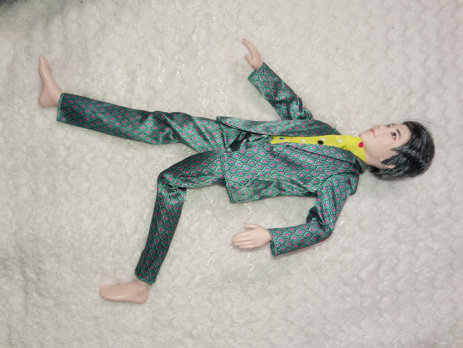 2. Ken BTS RM v zelenom obleku. Máplastové, ale ohybné telo (aj členky, zápästie aj kolená). Je v 100% stave. 40€