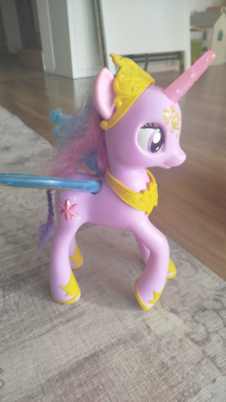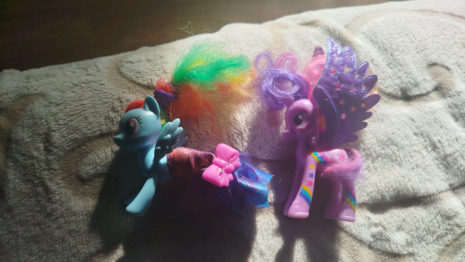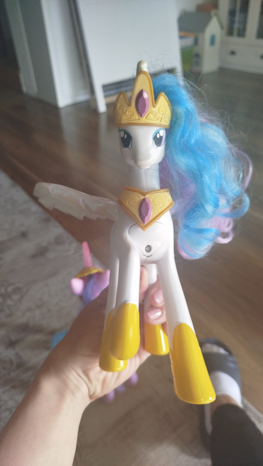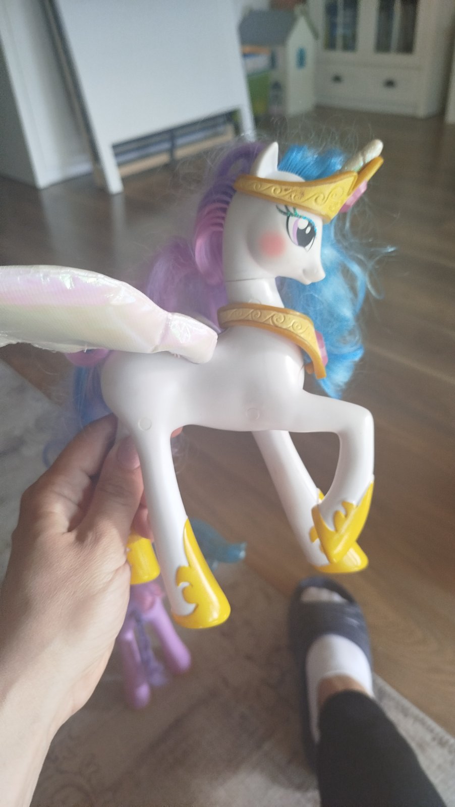 Predám 30 cm Twilight Sparkle hovorí, svieti, mava kridlami a rozprava 15 eur, 20 cm princezna Celestia 10 eur svieti ziaria jej kridl a vydava zvuky, dvaja mali ponici 6 eur.