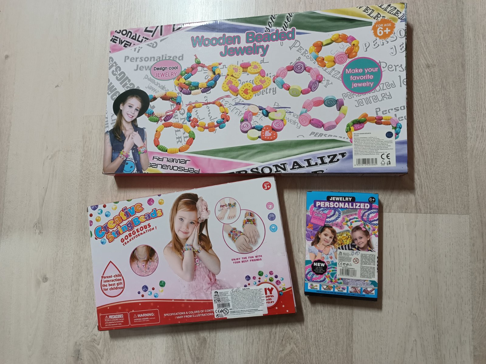 Koráliky, aj drevené, úplne nové na výrobu náramok. Cena malá súprava 2- stredná 5-veľká 10 euro + poštovné. Spolu 15 euro + poštovné.