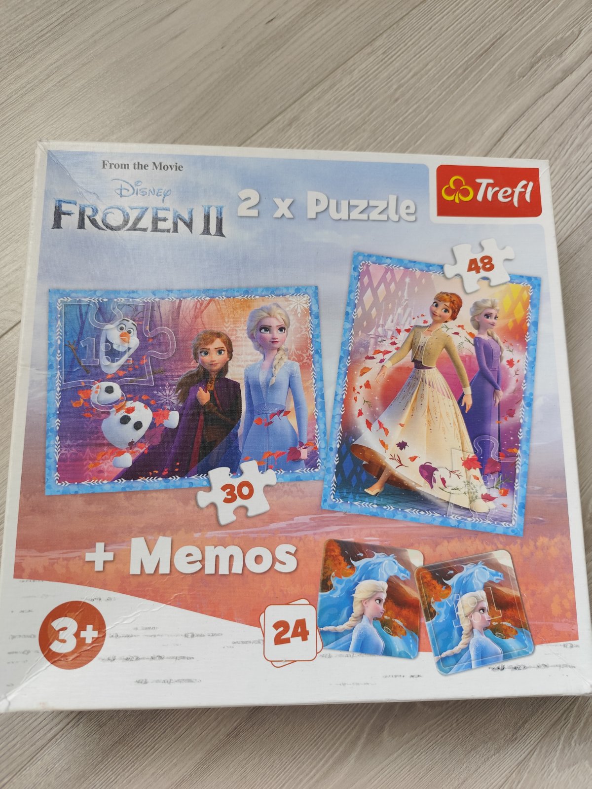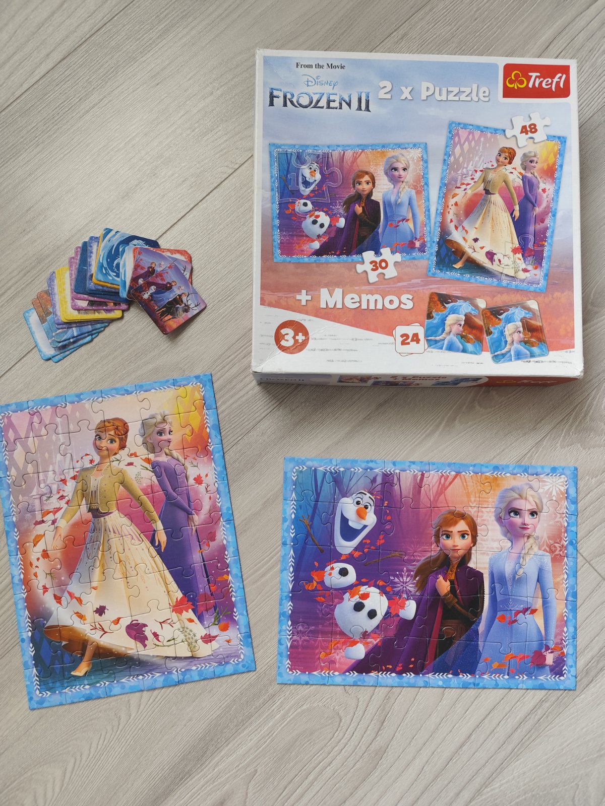 Hra puzzle 2x Frozen (30ks + 48ks) + 24ks pexeso Frozen, vhodne pre deti 3+