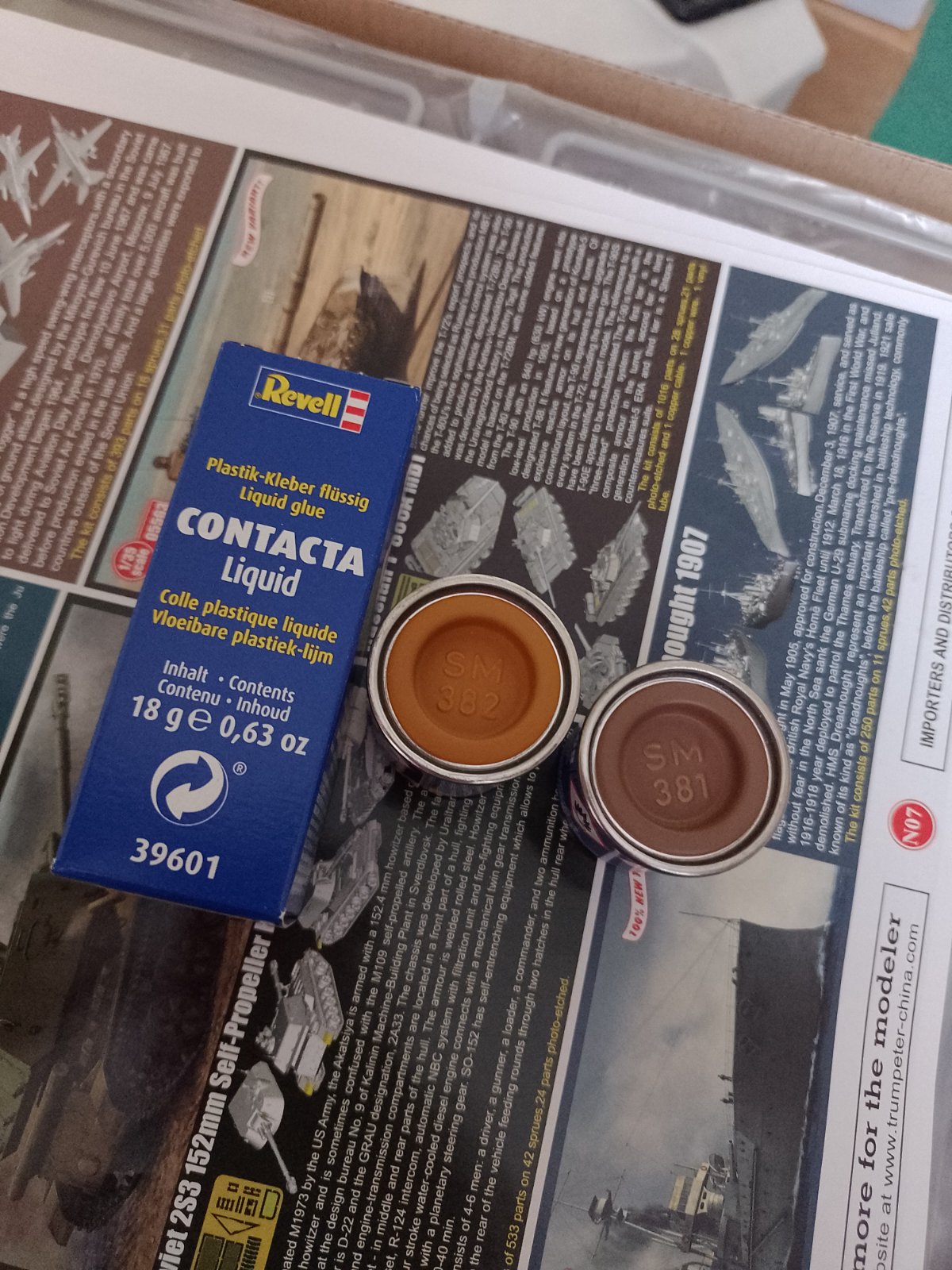 Škatuľa bez fólie,ale diely original zatavene vo folii, vsetko je komplet,skontrolované. K tomu aj dve farby a lepidlo