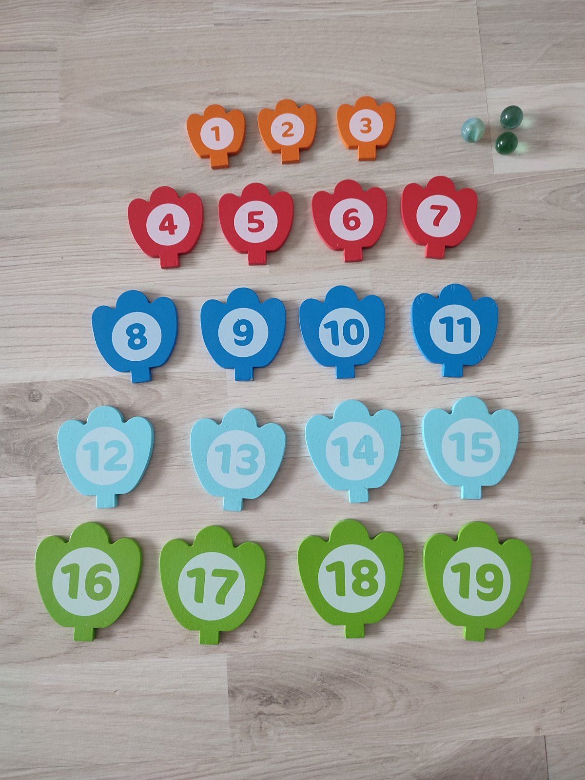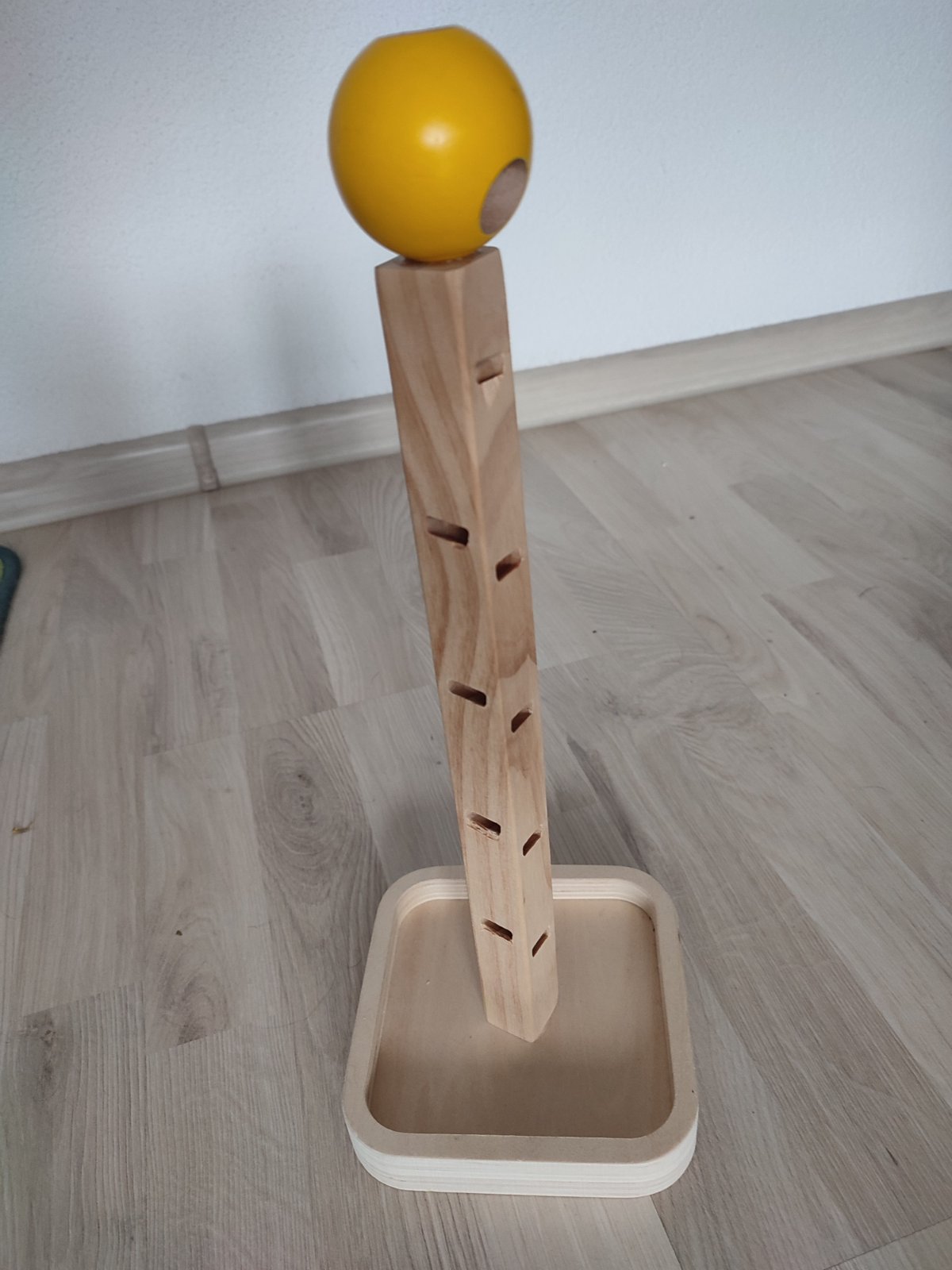 Drevená zvonkohra s guličkami. Niektoré lístočky držia slabšie, a preto vypadávajú. Tiež jedna gulička sa stratila, ale doplnila som inú.