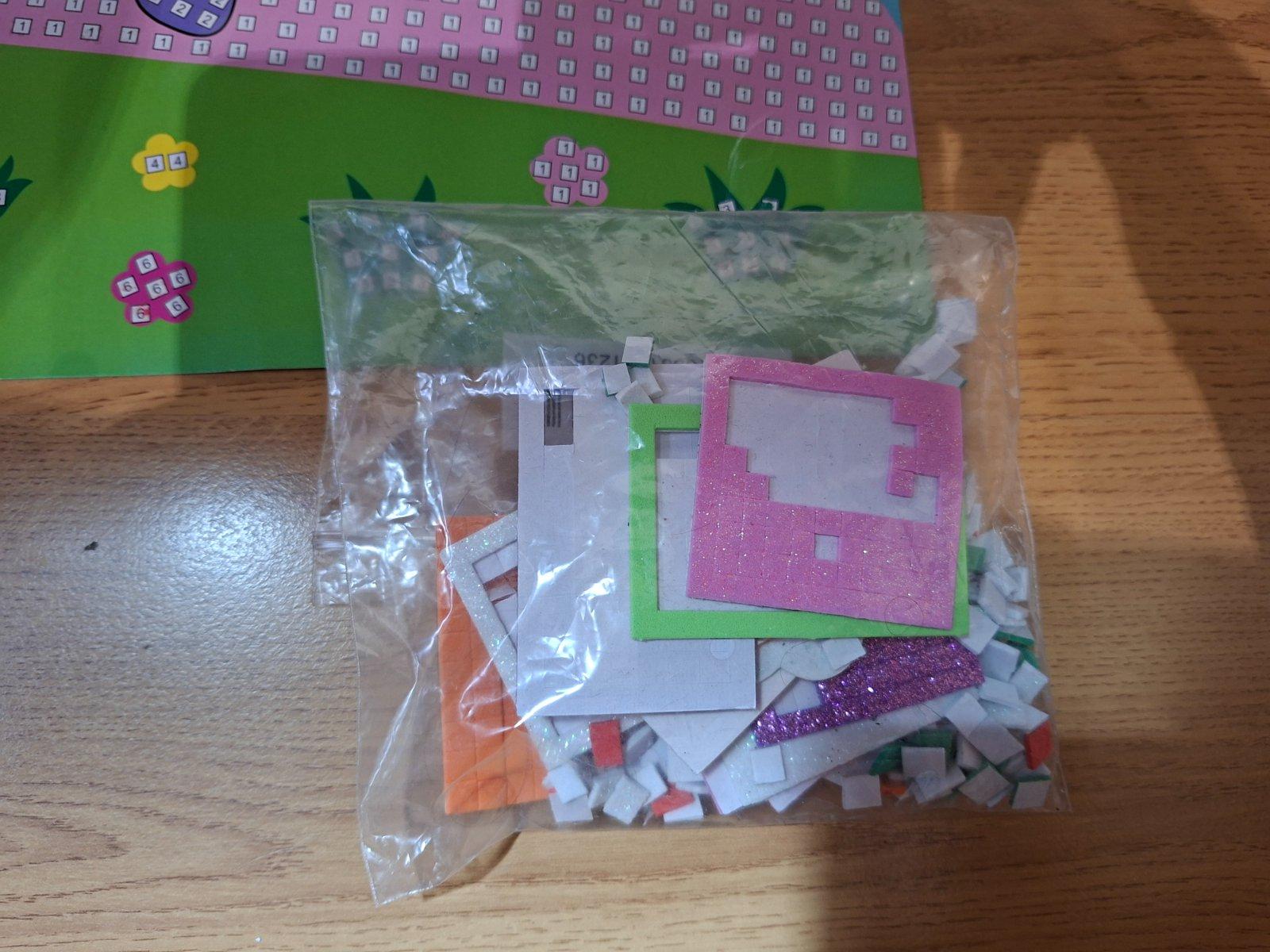Obrázok, kde deti lepia farebné nálepky (štvorčeky)