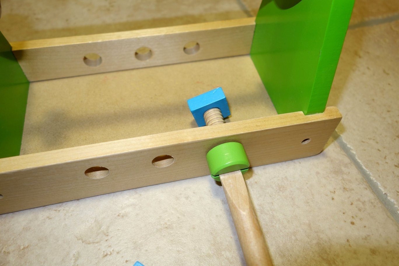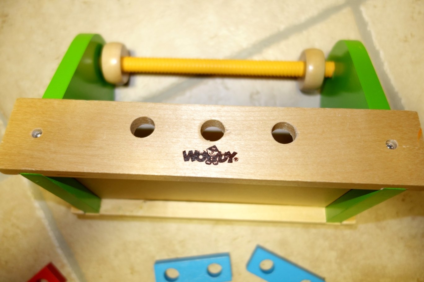 Woody drevené náradíčko, box, šrobovák, skrutky, kladivo, atď. Dajú sa šróbovať, spájať. Minimálne hrané, mali sme podobných viac.