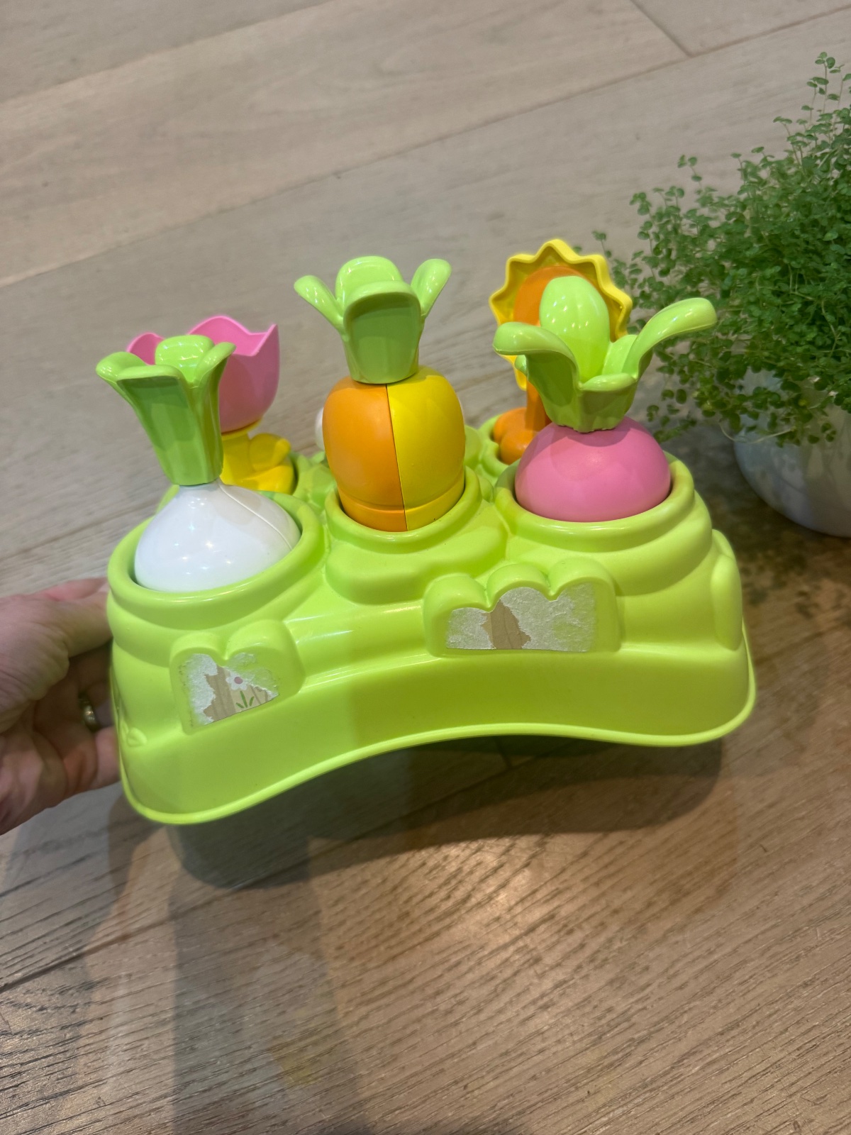 Mini záhradka vhodná od 1.roka, diétatko sa učí jednotlivé druhy zeleniny a podľa tvaru priraďovanie do otvorov