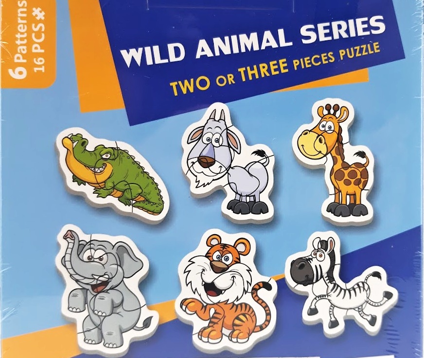 Detské puzzle, 16-dielikov na vyskladanie 6 obrázkov farebných zvieratiek.