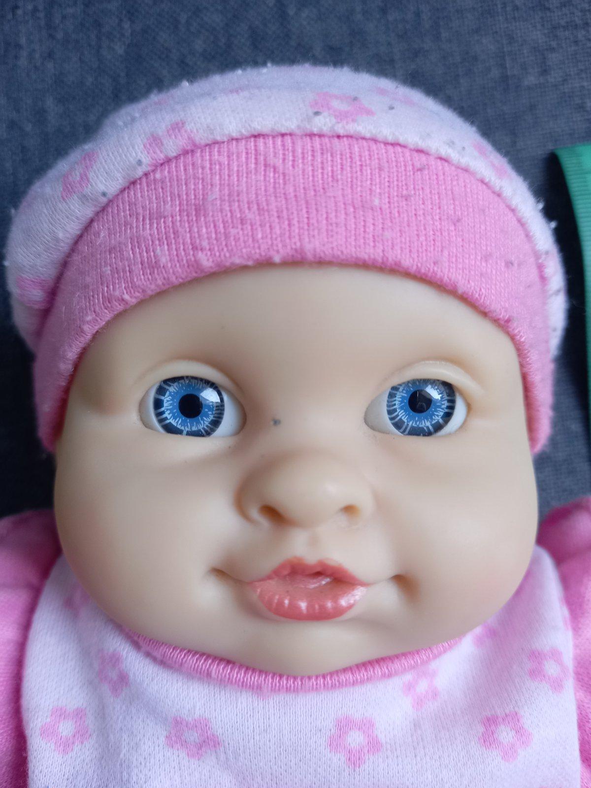 Bábika bábätko dievčatko Emmi, hraná, oblečenie oprané, bábika očistená, všimnite si všetky fotky, pofotila som aj farebné nedokonalosti na bábike, za 3,90 eur, plus poštovné.