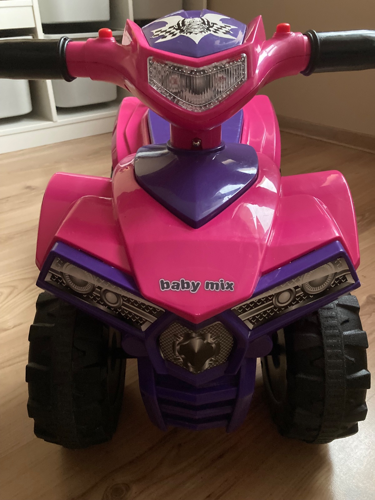 Skvelá Štvorkolka Baby Mix s tromi melódiami, klaksónom a blikajúcimi svetielkami na riadidlách. Odrážadlo pomáha rozvíjať motorické schopnosti dieťaťa. Je určené ako pre najmenšie deti, ktoré už vedia sedieť, tak aj pre deti, ktoré sa už naučili chodiť.