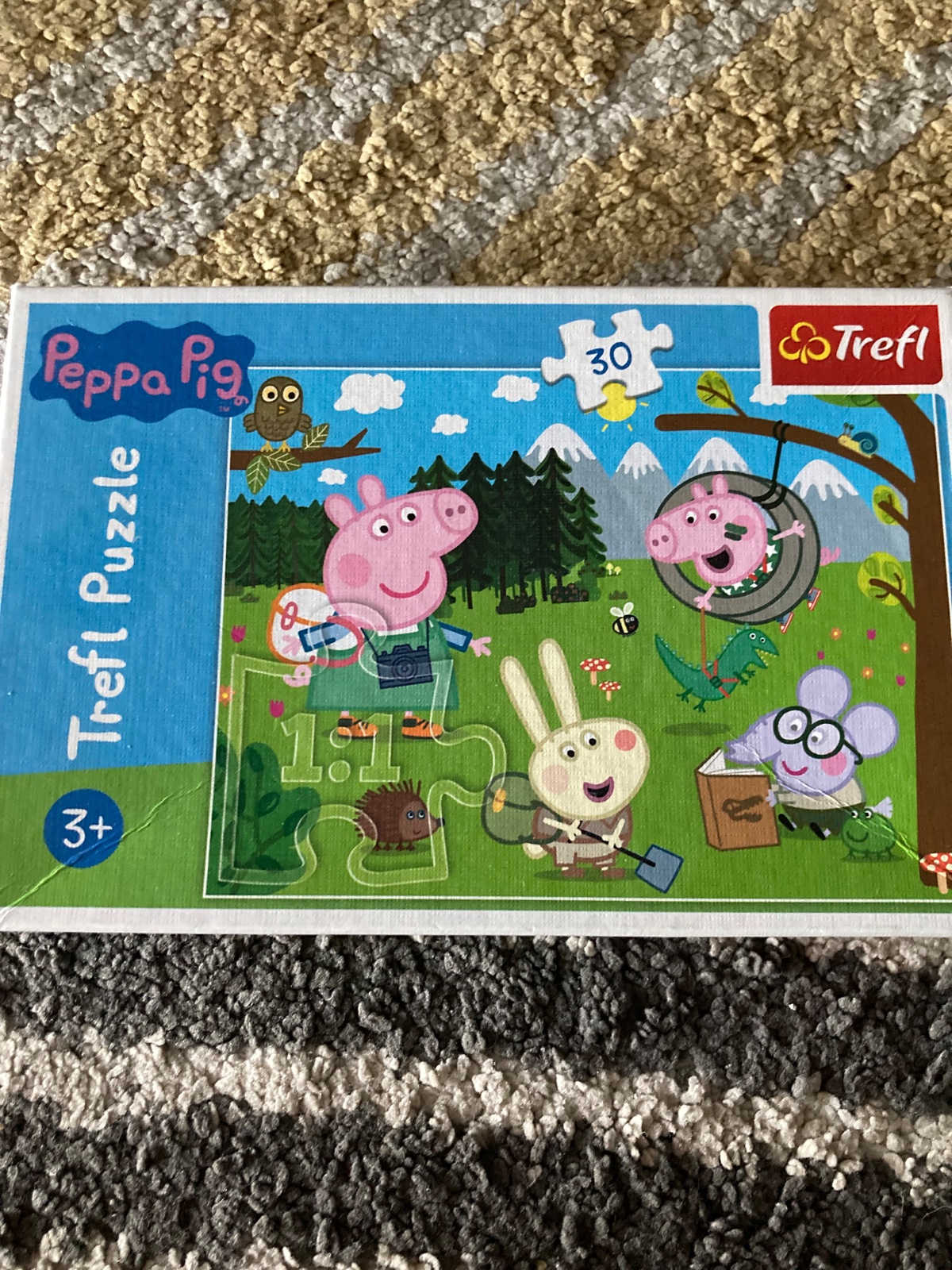 🔹Puzzle Lesná výprava Peppa Pig sú inšpirované populárnym animovaným seriálom pre deti Peppa Pig. Táto veľká skladačka z pevného kartónu je vytvorená špeciálne pre najmenšie deti. Živé farby a krásne vzory zvieratiek motivujú deti k hraniu.
