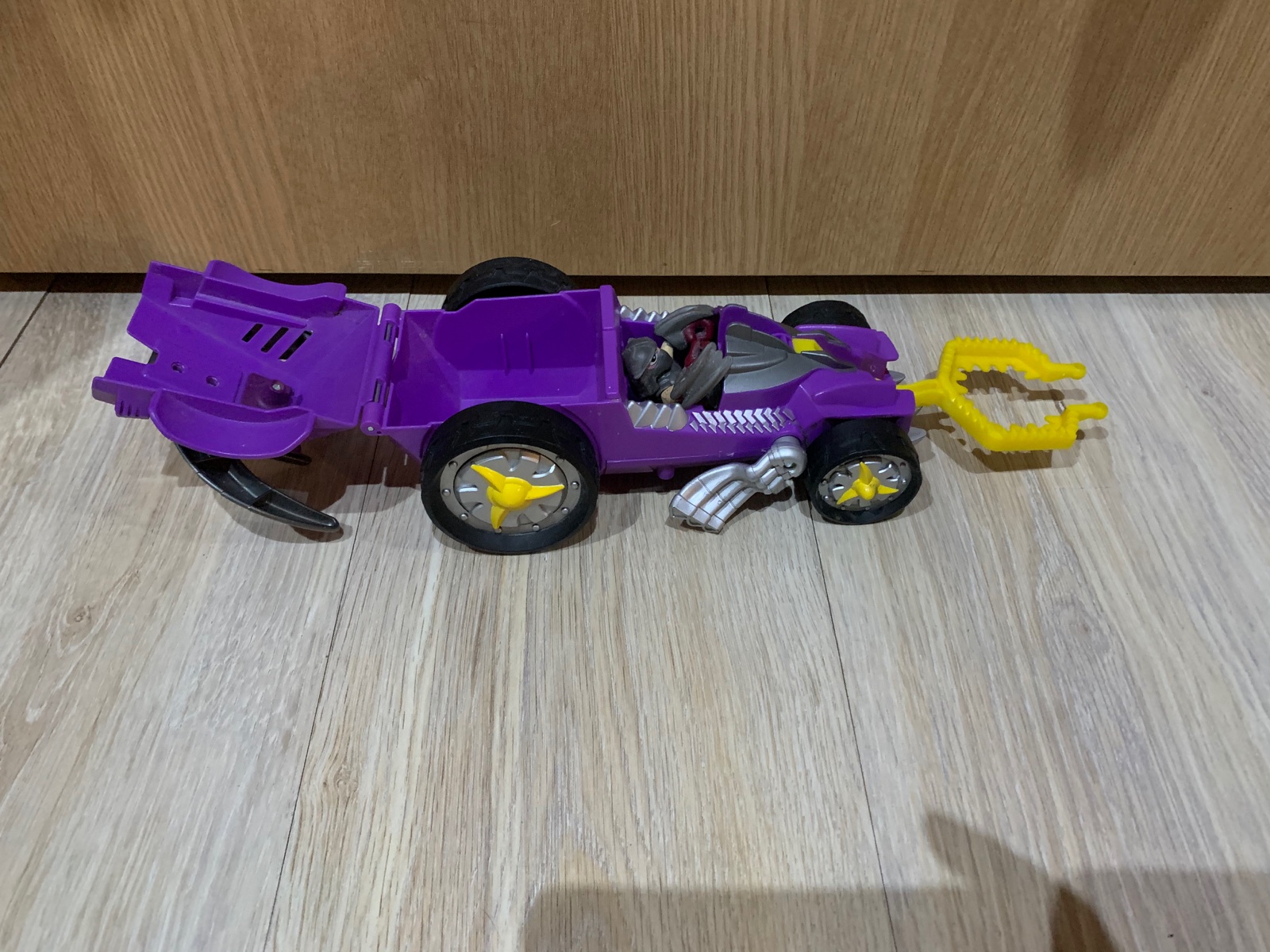 Predám auto nija po stlačený páčky striebornej sa dá žltá vidlica do predu a zadné sa dá otvoriť nafotené dlzka23cm po otvorený celého autá 43cm Posta podľa tarify sim pivn