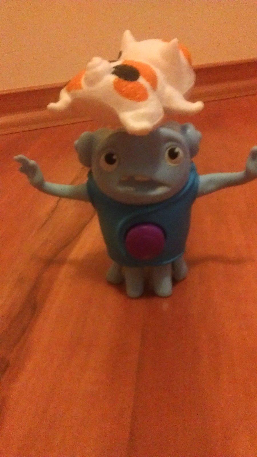 pri stlačení gombíka na brušku, sa točí psík nad jeho hlavou