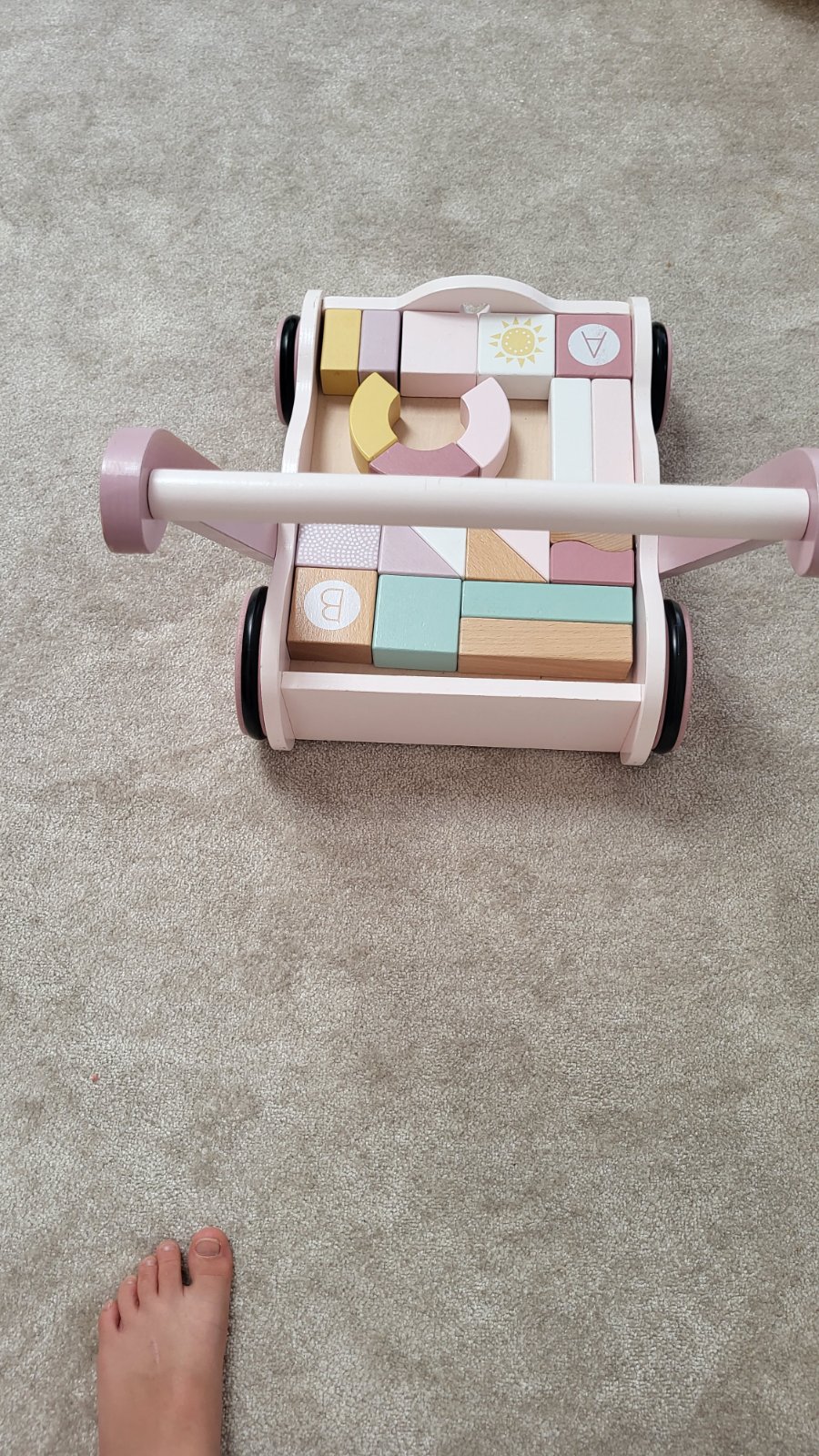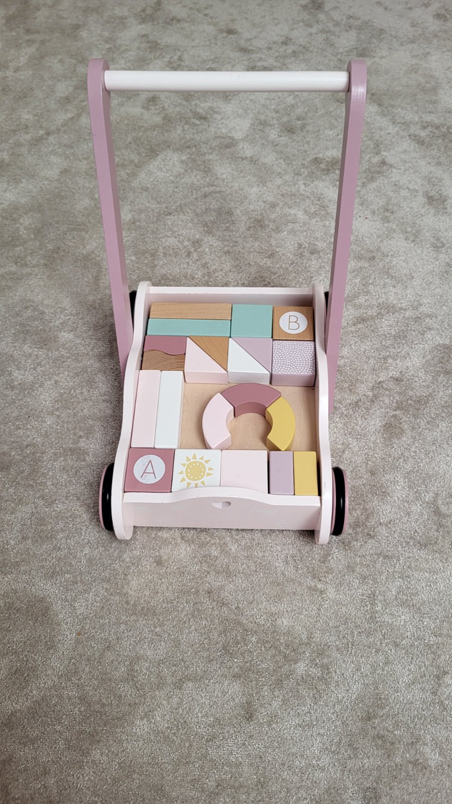 Ponúkam vozík s drevenými kockami ako vidíte na obrázkoch.