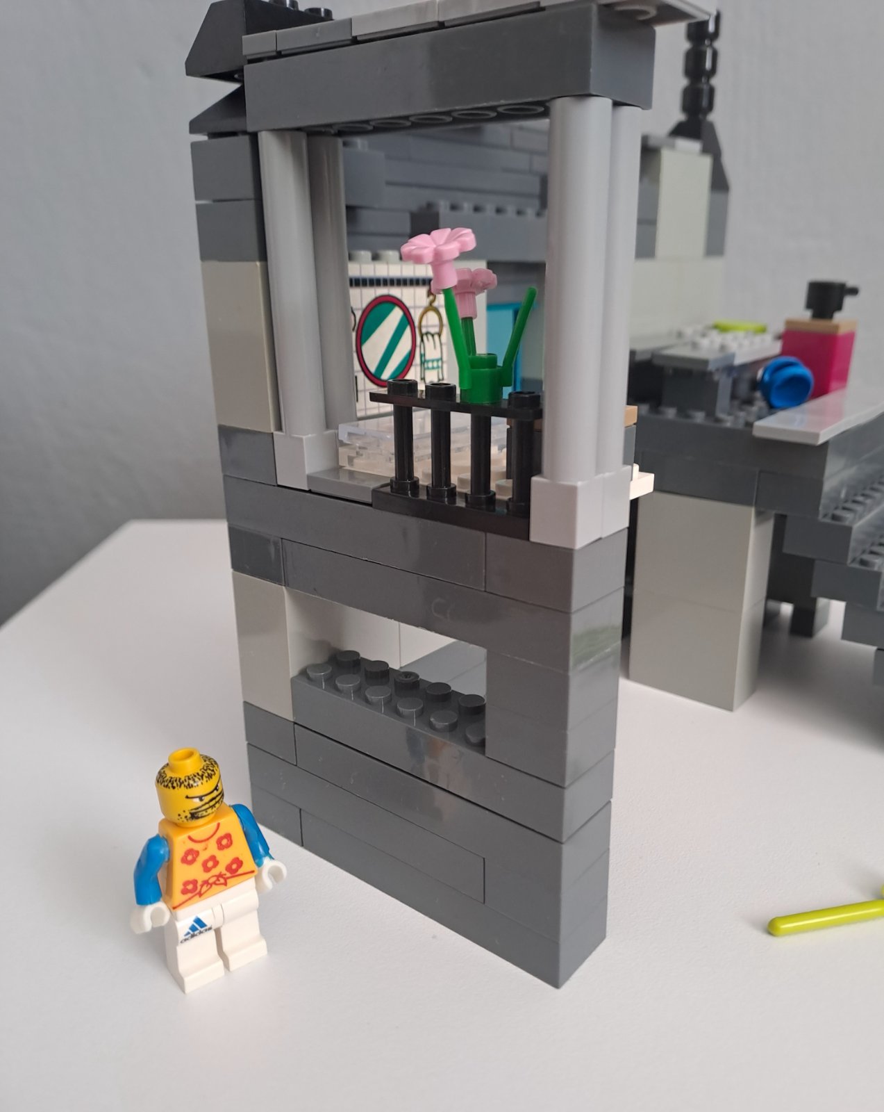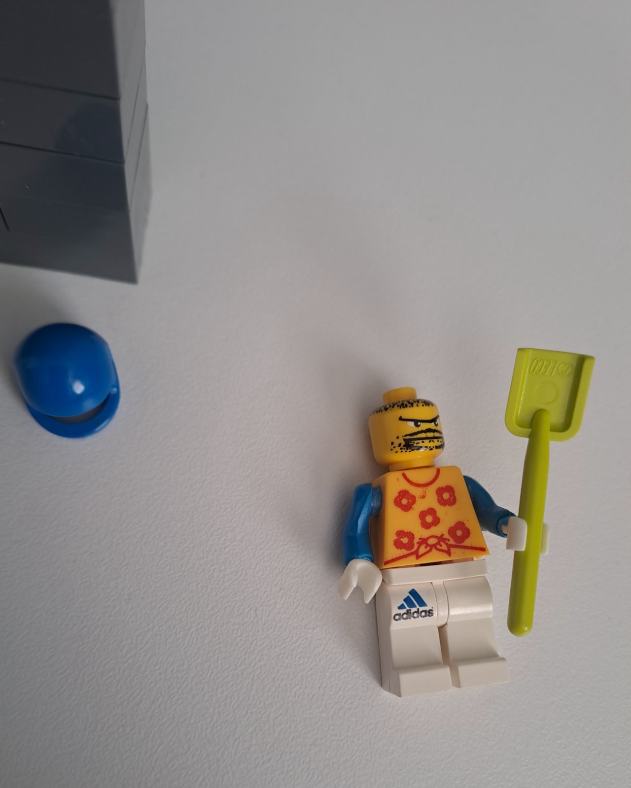 Domcek stavebnica panacik ma adidas gate:D aj prilbu na hlavu, len postavané dcerou.