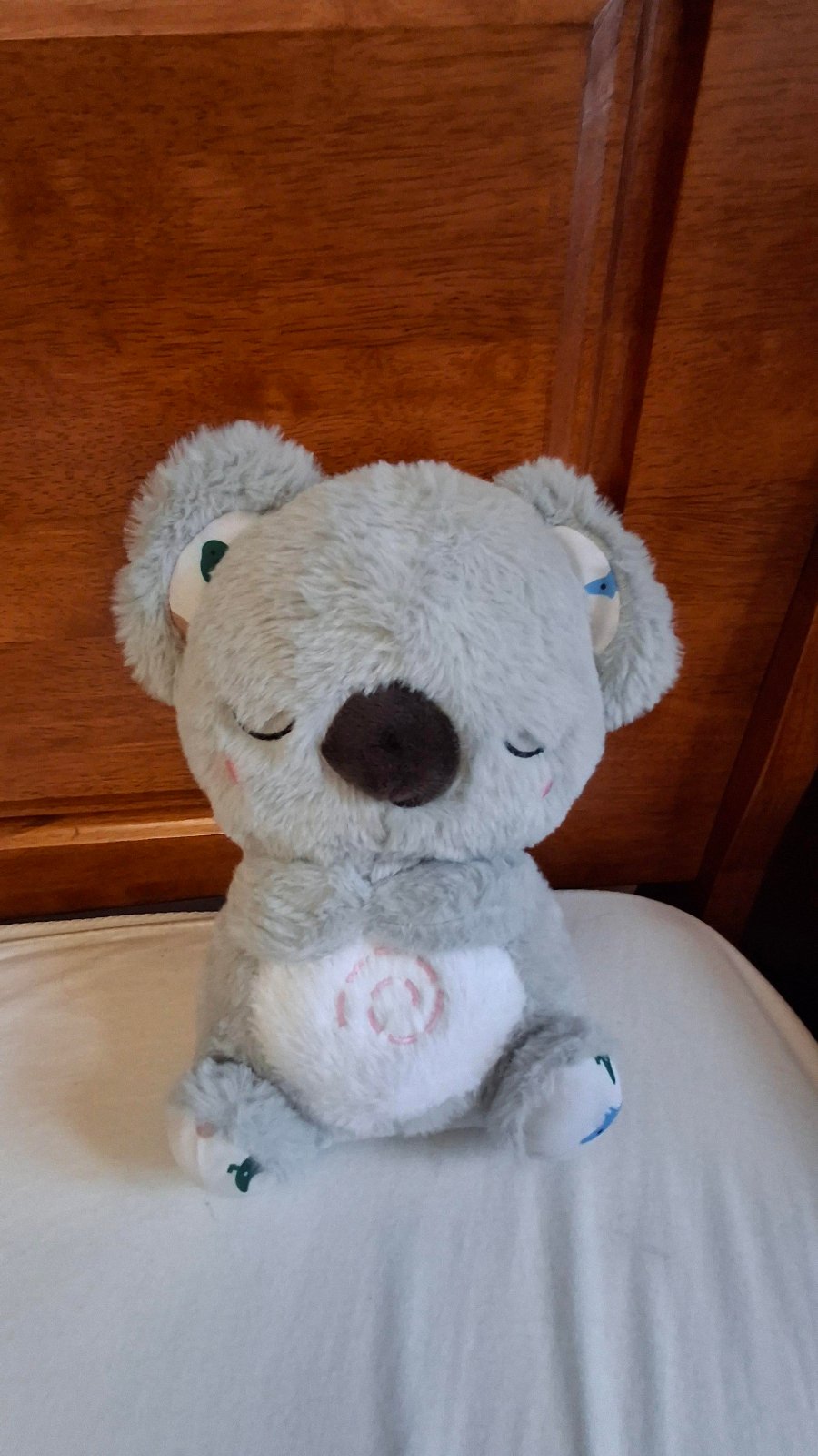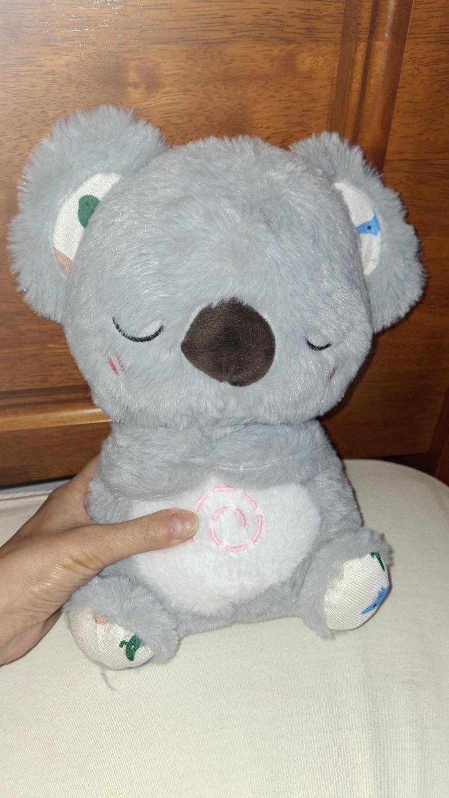 predám koalu s melódiami pozýva vaše bábätko k príjemnému maznaniu. Táto maznavá plyšová hračka s melódiami má mäkké svietiace bruško, ktoré sa pohybuje hore a dole v upokojujúcom rytme, ako keby naozaj dýchala. Stačí stlačiť pravú nožičku a hrá, po každom stlačení mení melodiu, ľavá nožička zastavuje hudbu. Pôvodná cena bola 30 eur, predám za 15 eur.