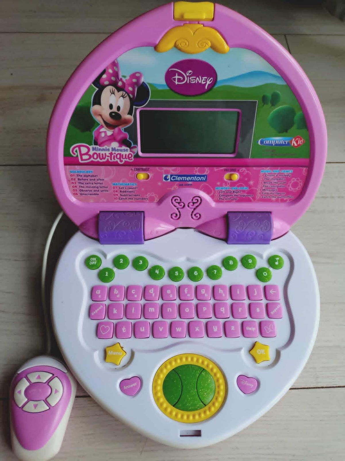 Detský počítač bez bateriek. Sú tam rôzne čiernobiele hry, aj hranie akože na klavíri. Jazyk je angličtina.
