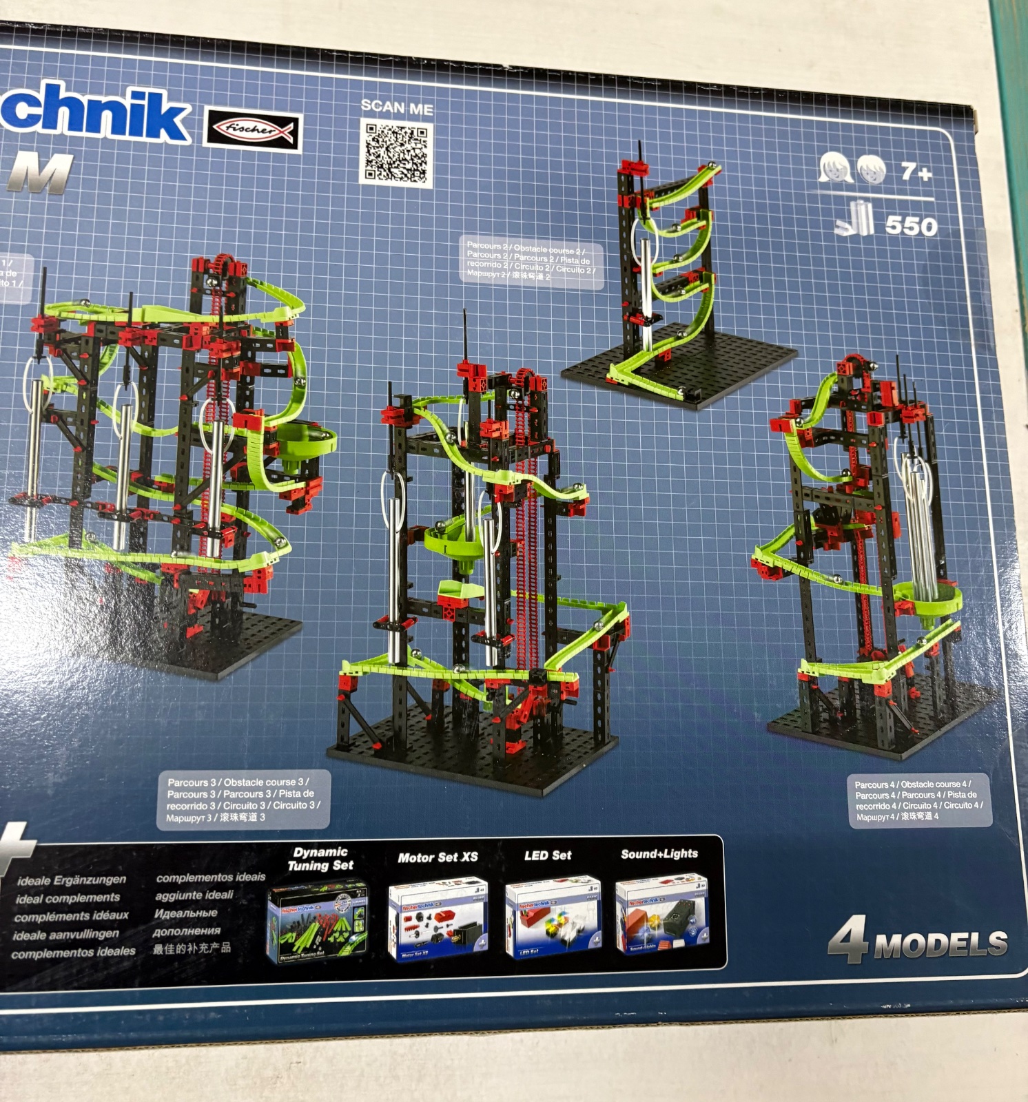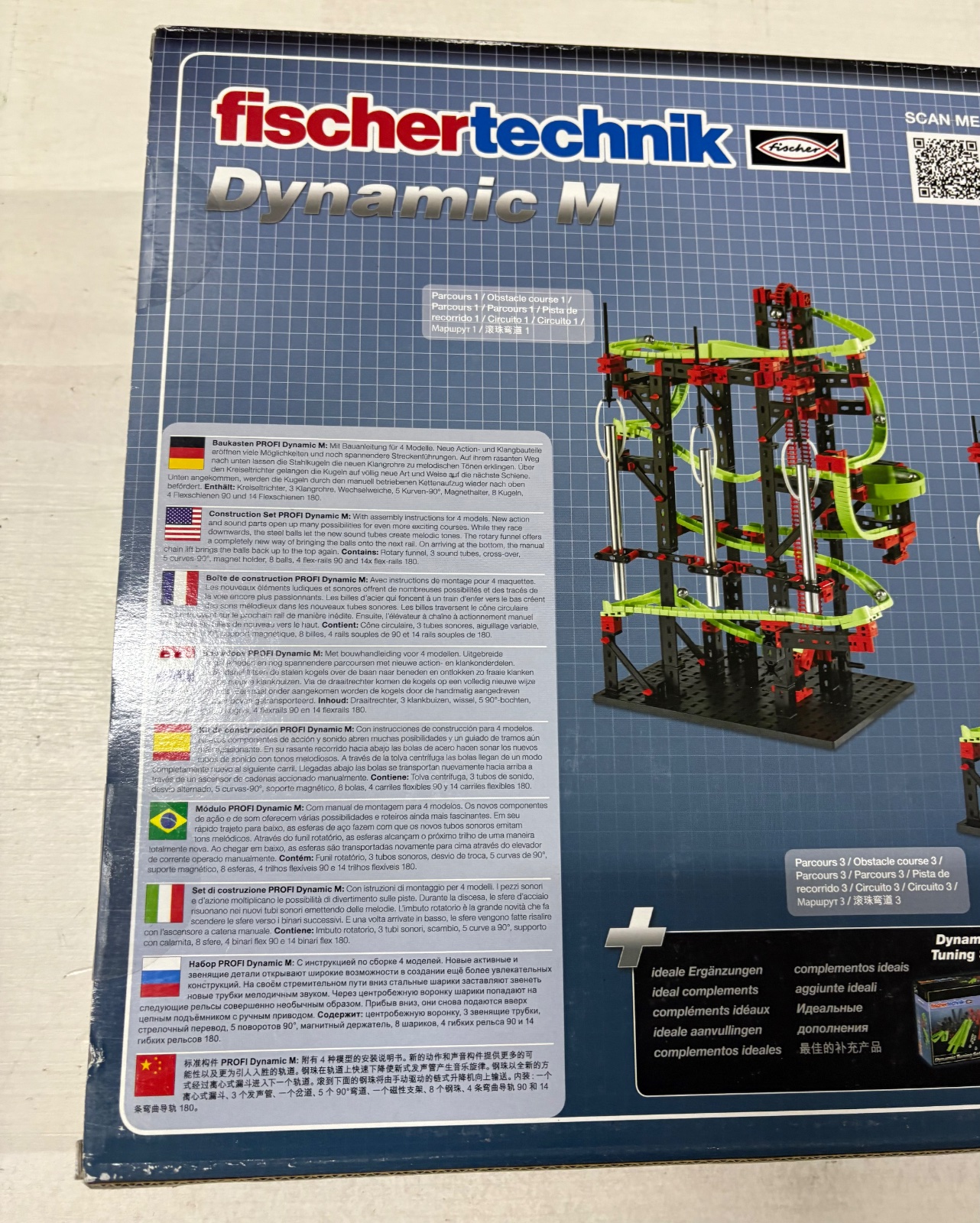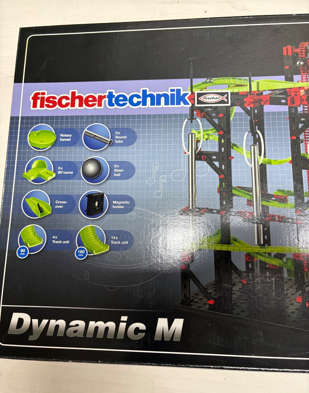Stavebnica fischertechnik Dynamic M prináša deťom aj dospelým vzrušujúci zážitok z fyziky, rýchlosti a kreatívneho stavania. S využitím 550 dielov je možné zostaviť až 4 odlišné guličkové dráhy plné akcie, dynamiky a zvukových efektov.