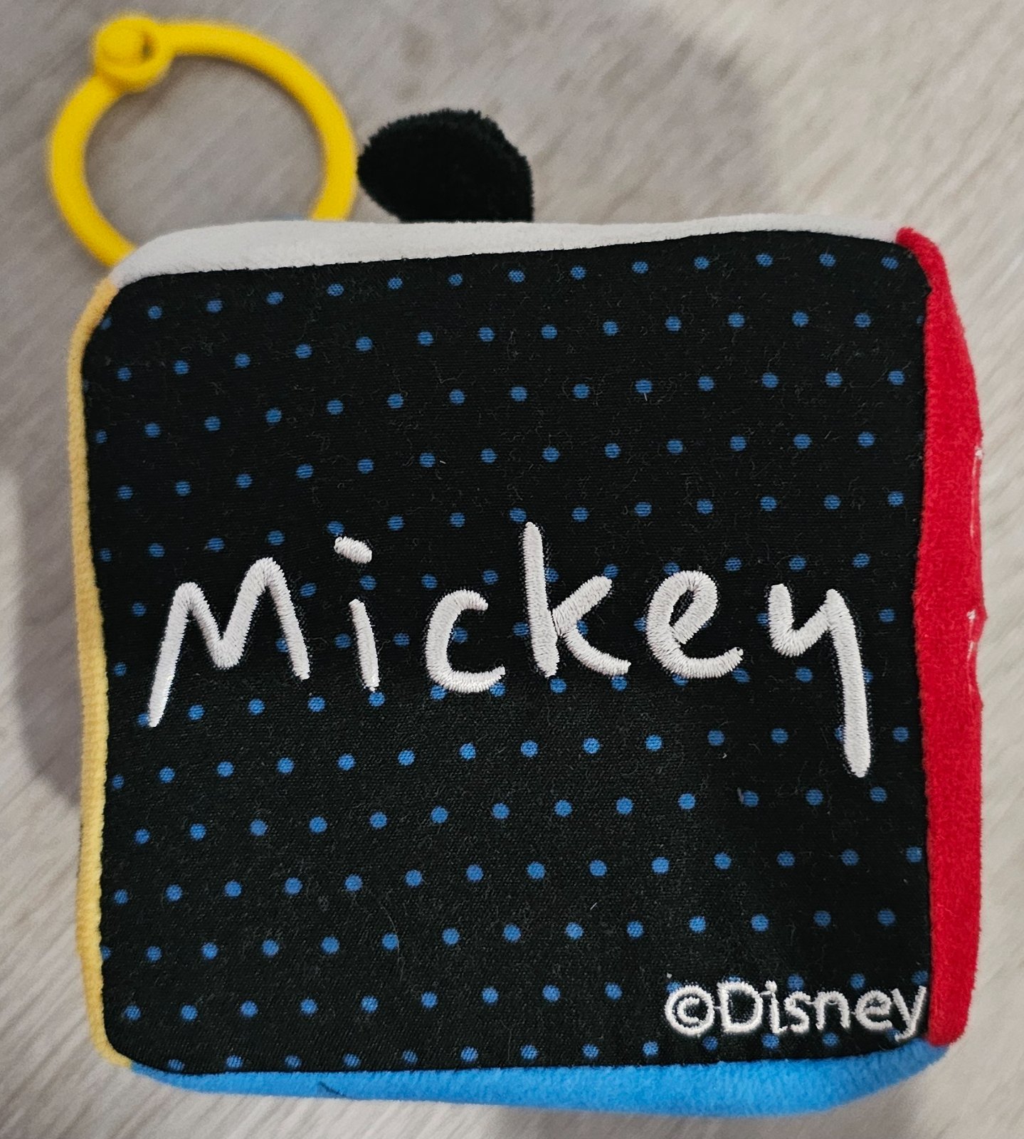 Predám málo používanú plyšovú závesnú hrkálku (kocku) Mickey Mouse v zachovalom stave.