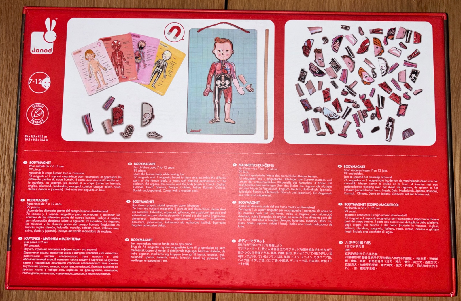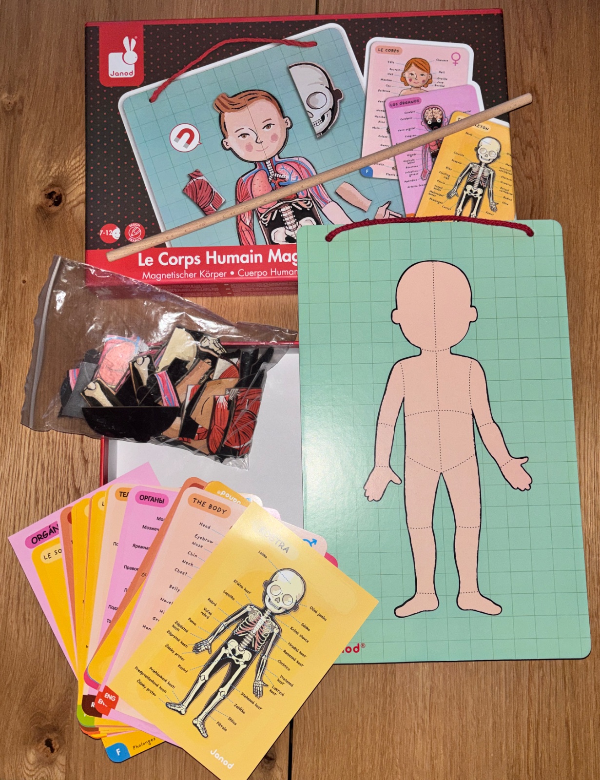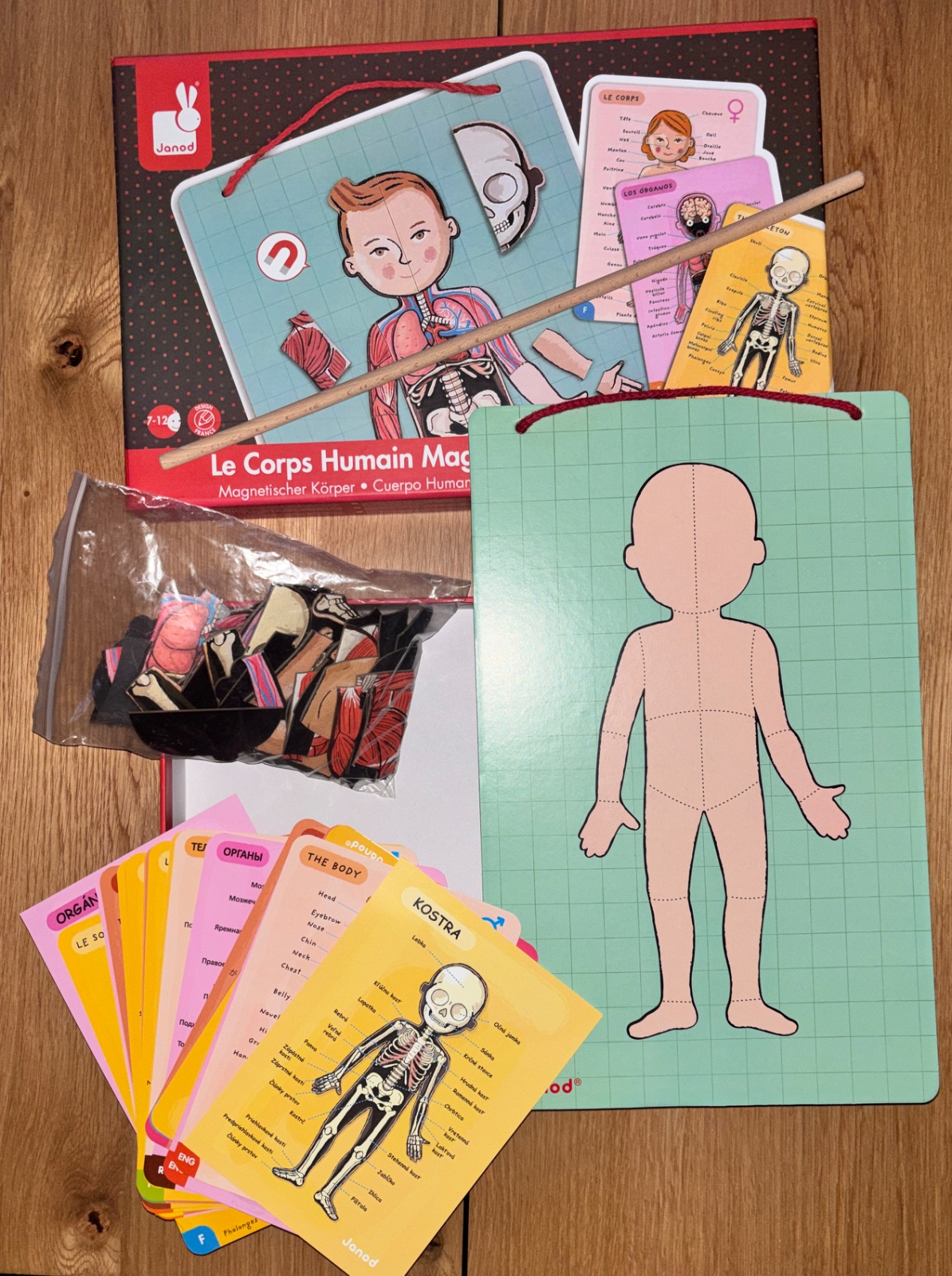 Na tabulu sa dajú dopĺňať jednotlivé orgány, svaly, kosti. Sú k tomu popisné kartičky v 11 jazykoch vrátane slovenčiny.