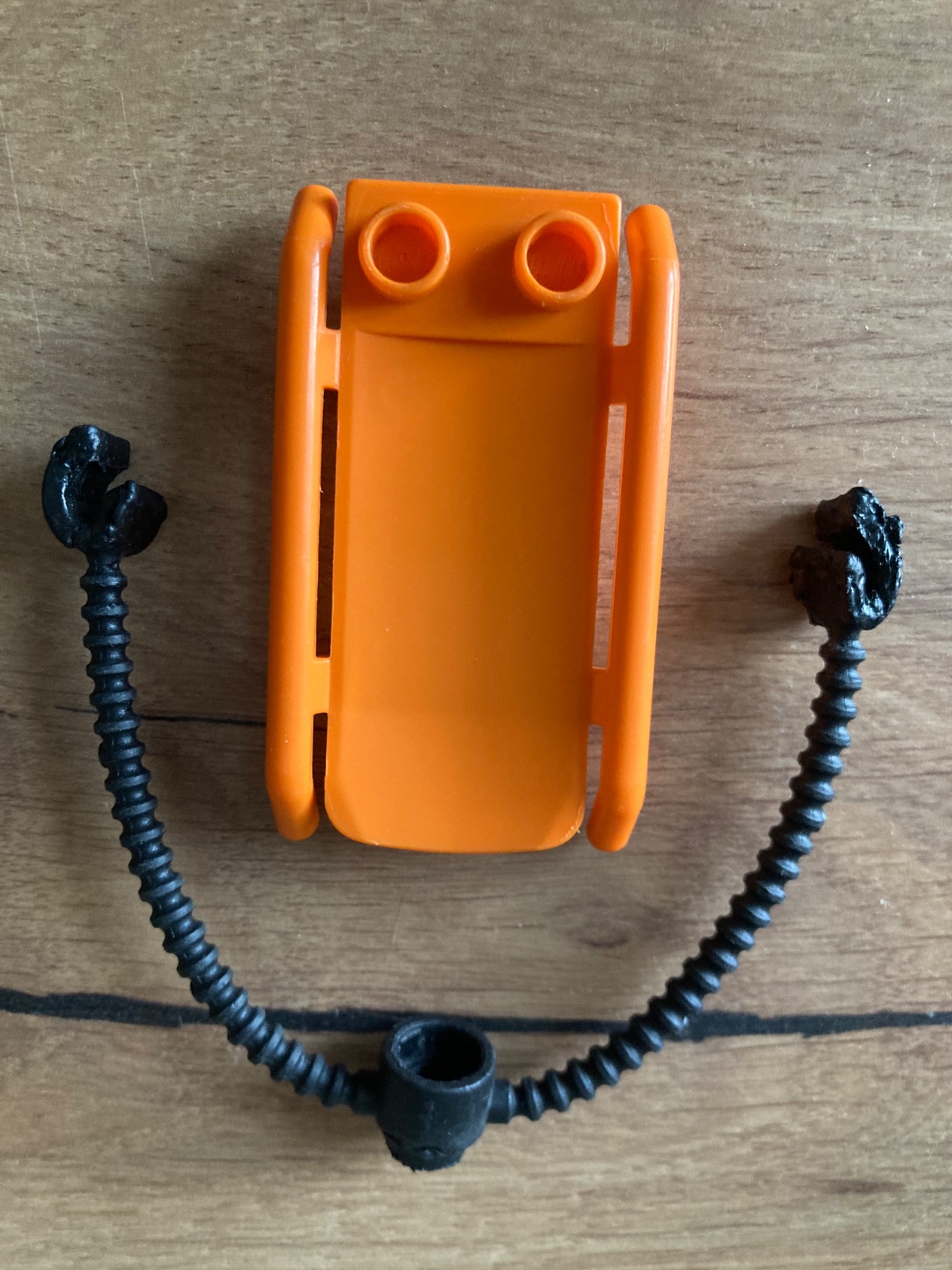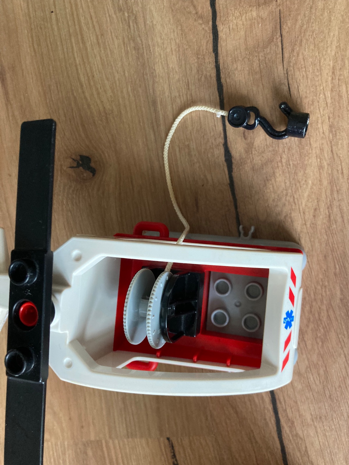 Vrtuľník s podložkou pre raneného. Čierne úchytky na oranžovú podložku sú zdeformované (obžuté), ale ešte držia - viď foto.