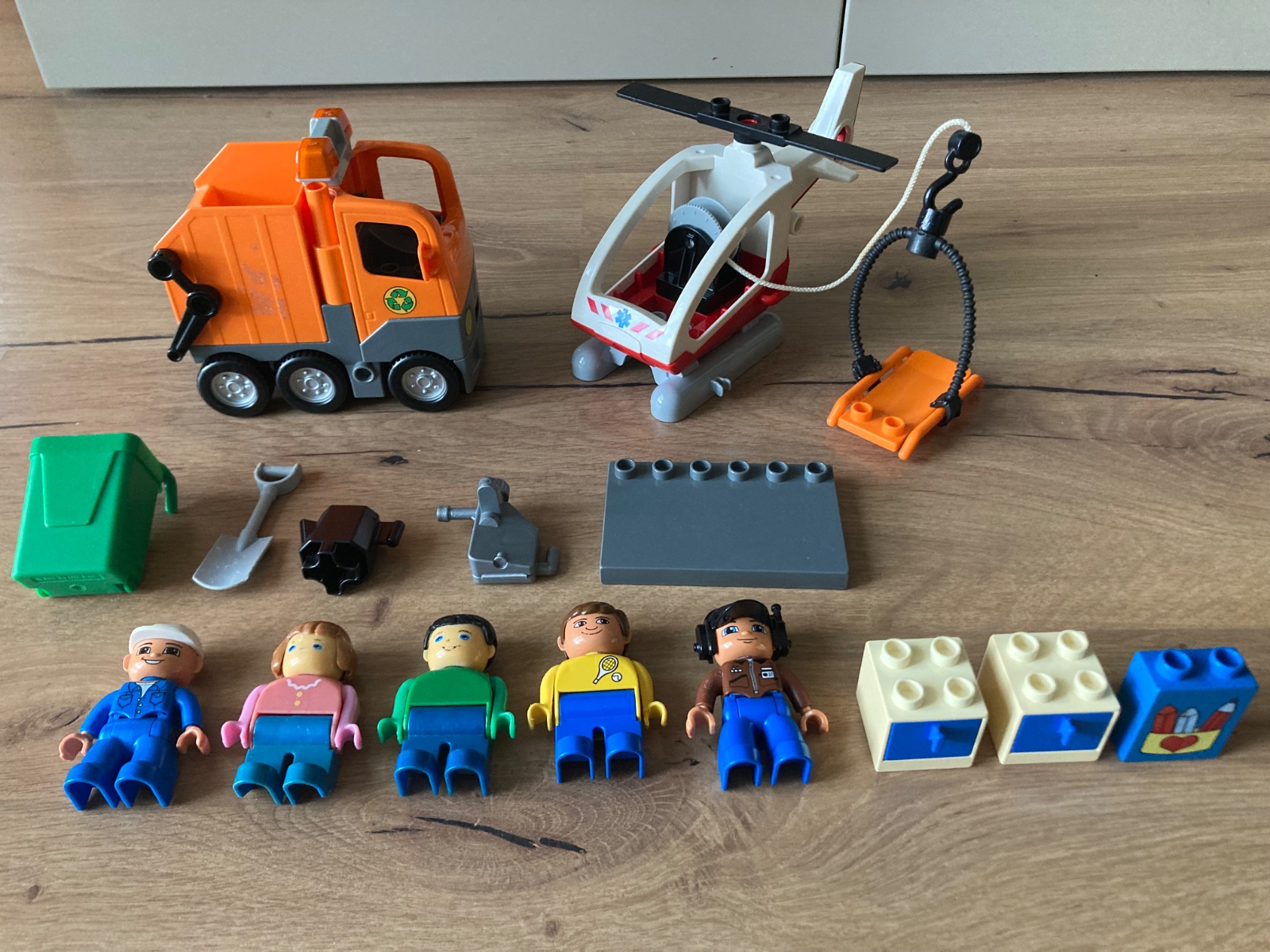 Lego duplo - smetiarske auto,vrtuľník,postavičky 5