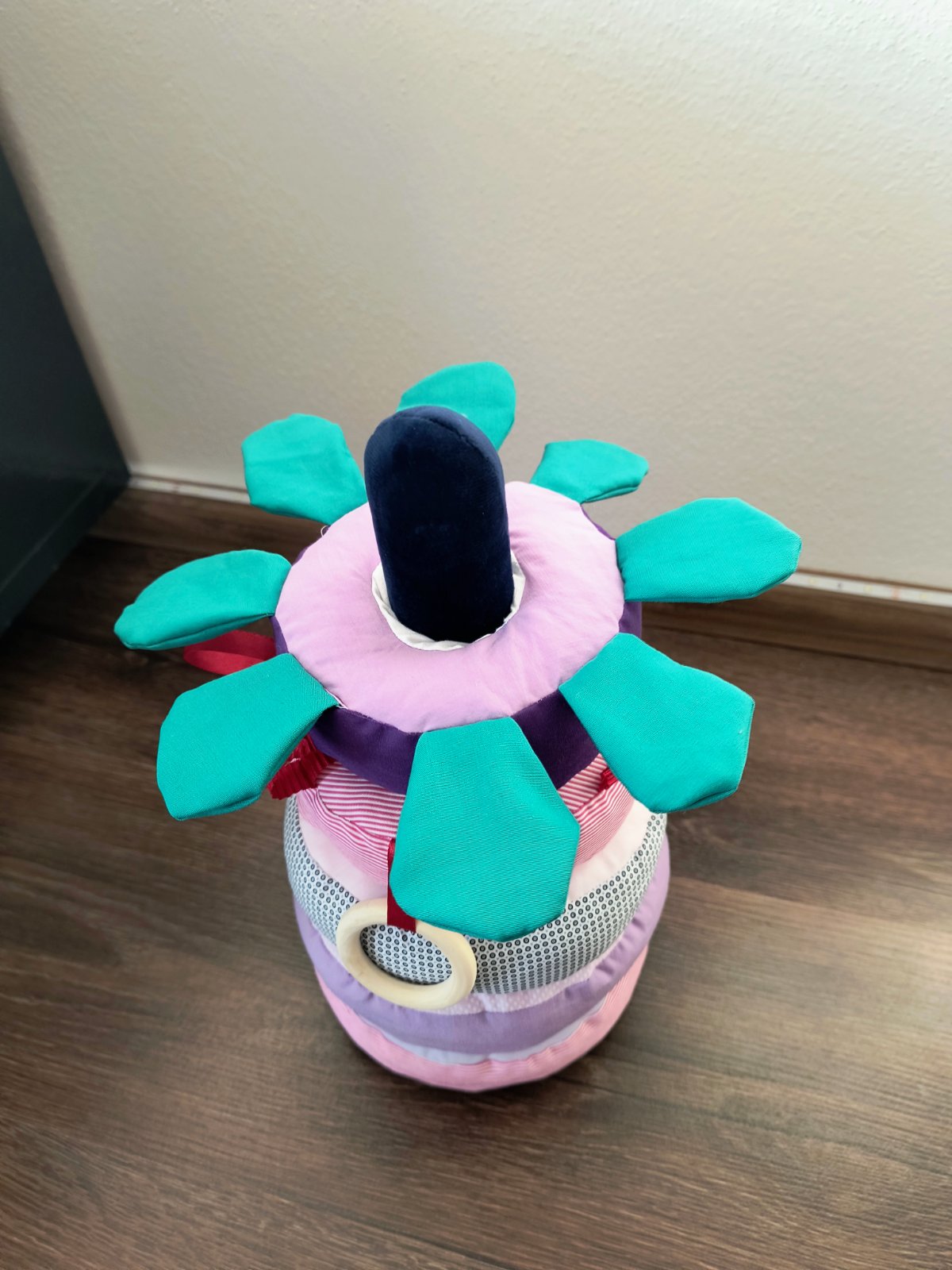 Super edukačná pyramída na rozvoj motoriky a zrakové vnímanie u detí z bavlnených látok a vyplnená dutým vláknom, lahučká, vysoká je 35cm,cena+pošta podľa taríf slovenskej pošty