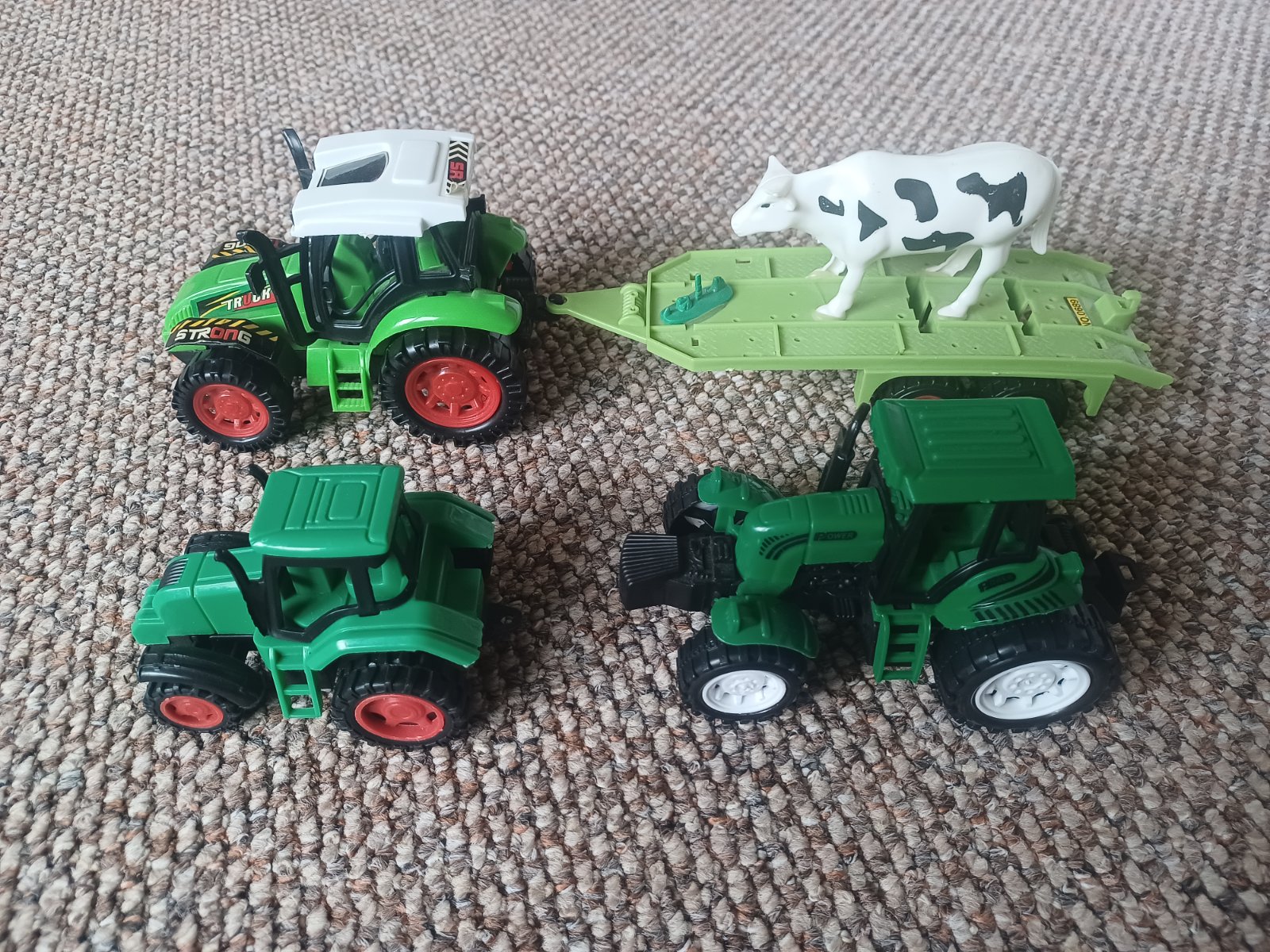 Predám 3 traktory. Cena jednotlivo 0,50 eur. Pri odbere všetkých k nim darujem ten najväčší s traktoristom.