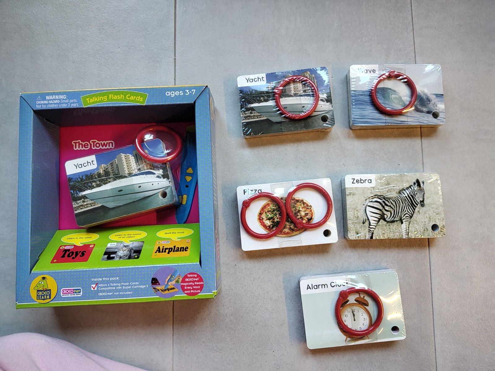 Karty so základnými slovíčkami, rozdelené do 5 tématických okruhov. Karty sú potlačené z oboch strán. Na jednej strane nájdete názov predmetu, zvieraťa, jedla … v anglickom jazyku. Tu má dieťa možnosť zvoliť si aj funciu hláskovanie. Pri kontakte pera s touto stranou karty pero zreprodukuje zvuk, ktorý daný predmet vydáva. Rozmery karty – 11 cm x 7,5 cm, 200ks v balení.