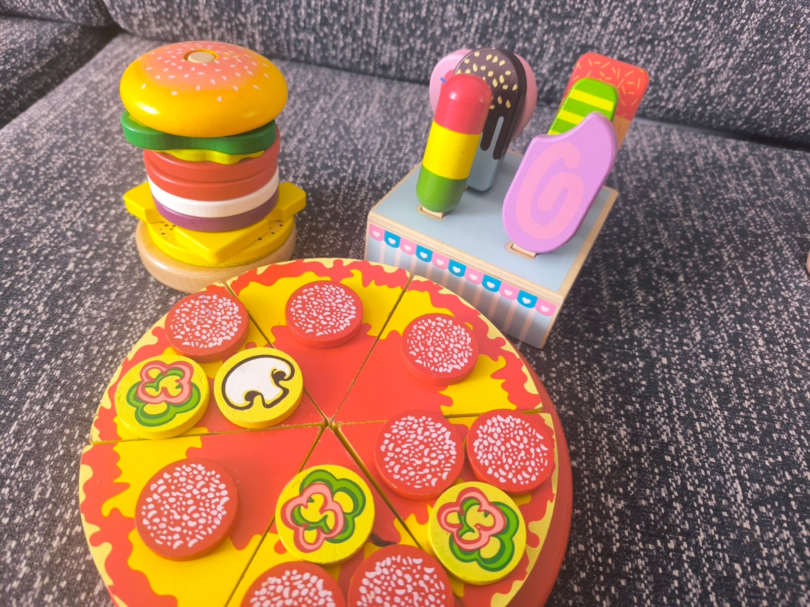 Úžasné hračky z dreva do kuchynky/obchodíku. Všetky spolu 15e+pošta. Predám aj jednotlivo.