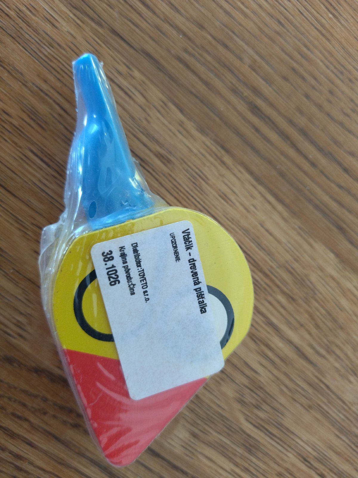 Predám nerozbalenu klasickú drevenú píšťalku v tvare vtáčika - ideálny prvý hudobný nástroj pre začínajúcich muzikantov. Píšťalka je vyrobená z dreva a plastu bez toxických prímesí. Vhodná aj ako darček. Skvelá hračka pre deti už od 1.5 roka. Rozmery: 10 x 5 x 3.5 cm.