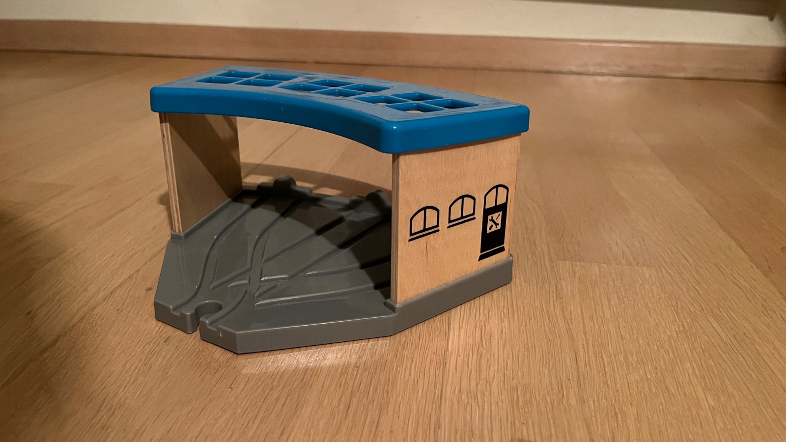 Rozkladateľné depo pre vláčikodráhu.