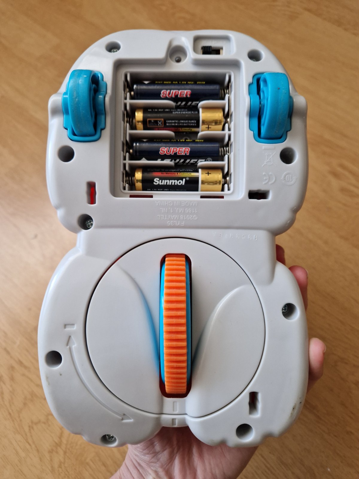 Značka Fisher price. Hrá upokojujúce melódie, bruško sa pohybuje hore dole, lampa svieti, hračka dýcha, bije mu srdiečko. Toto všetko sa dá zvlášť vypínať podľa potreby. Super pomôcka na zaspávani...