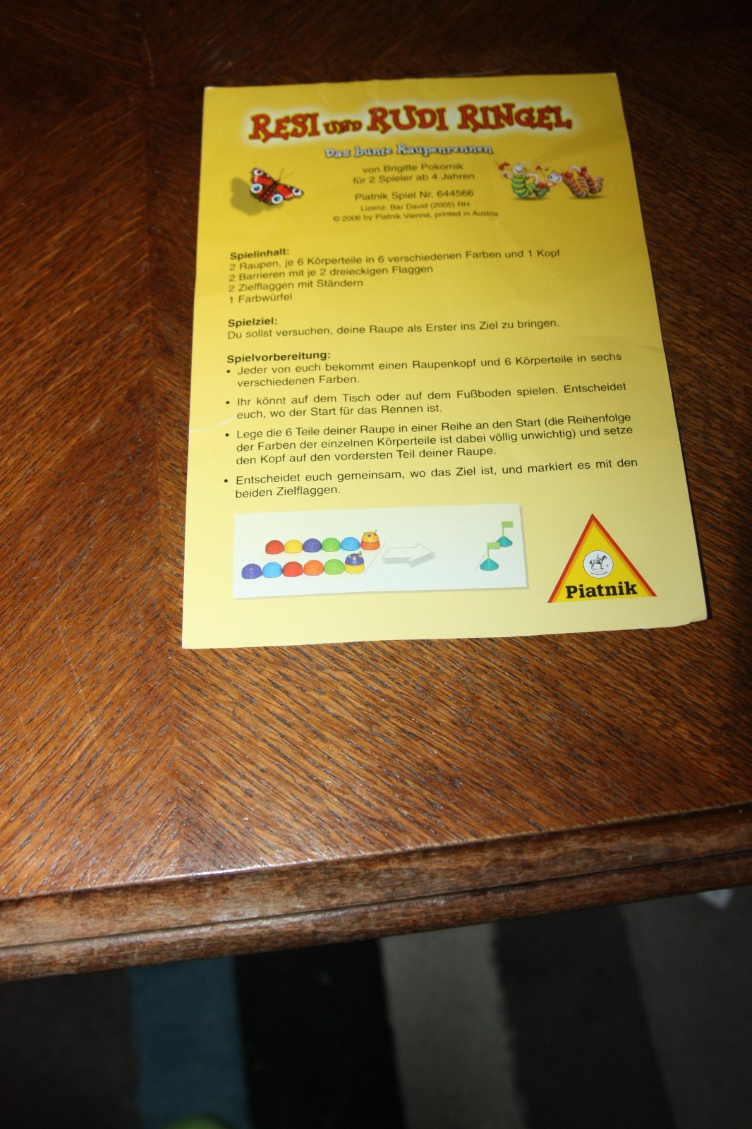 Spoločenská hra pre 2 hráčov od 4 rokov. Hraná, zachovalá, originál kocka nahradená inou. Pravidlá v nemčine.