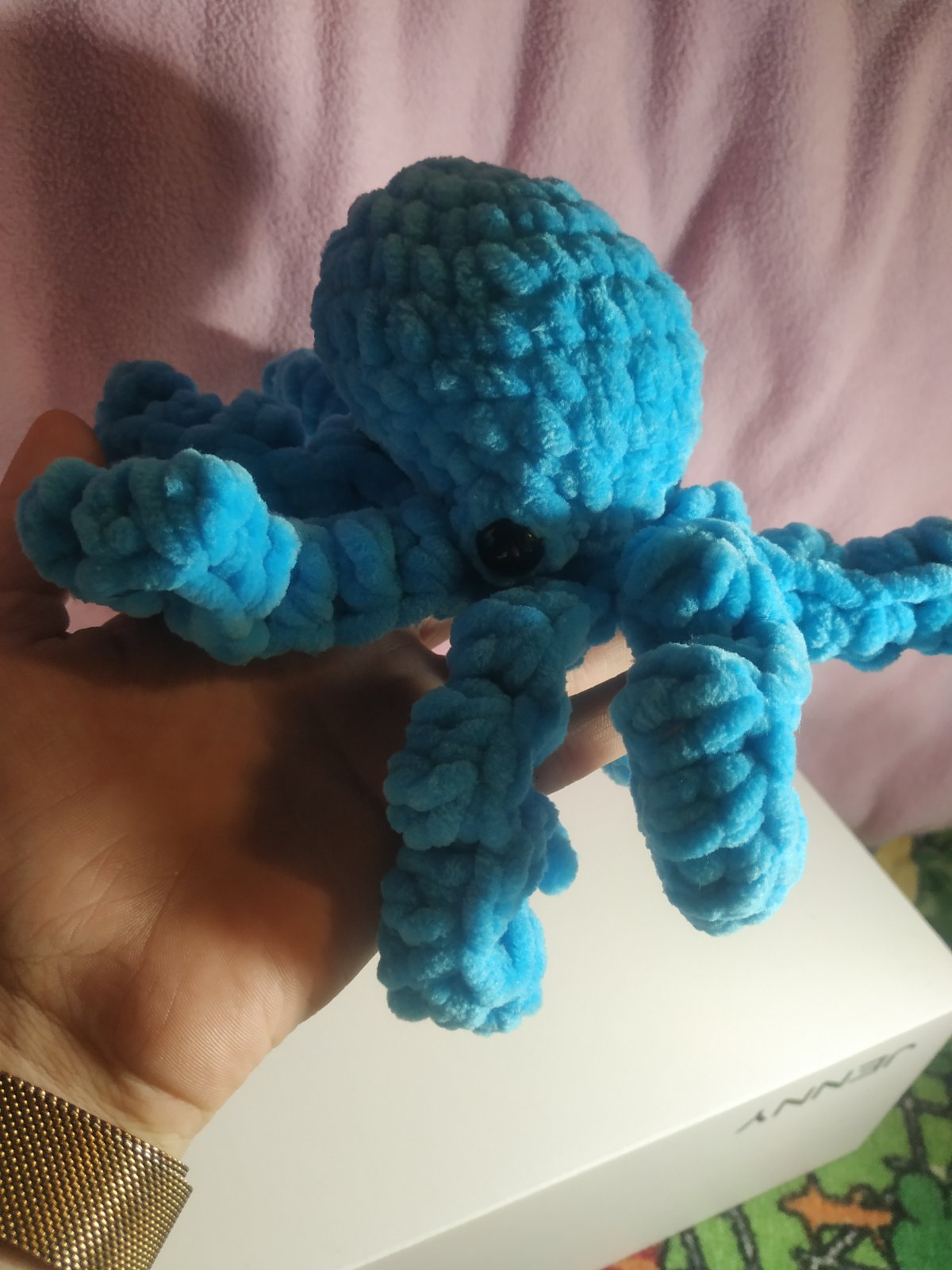 Značka Fisher price. Hrá upokojujúce melódie, bruško sa pohybuje hore dole, lampa svieti, hračka dýcha, bije mu srdiečko. Toto všetko sa dá zvlášť vypínať podľa potreby. Super pomôcka na zaspávani...