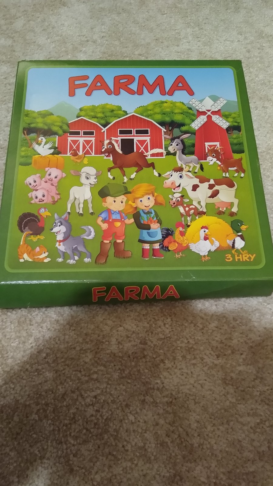 Spoločenská hra Farma je určená pre 2 - 6 hráčov starších ako 5 rokov. Súčasťou hry sú pestré kartičky so zvieratkami, ktoré deťom poskytnú zábavu aj poučenie. Obsah balenia: Hrací plán, 70 kartičiek, 6 figúrok, hracia kocka, návod na hry