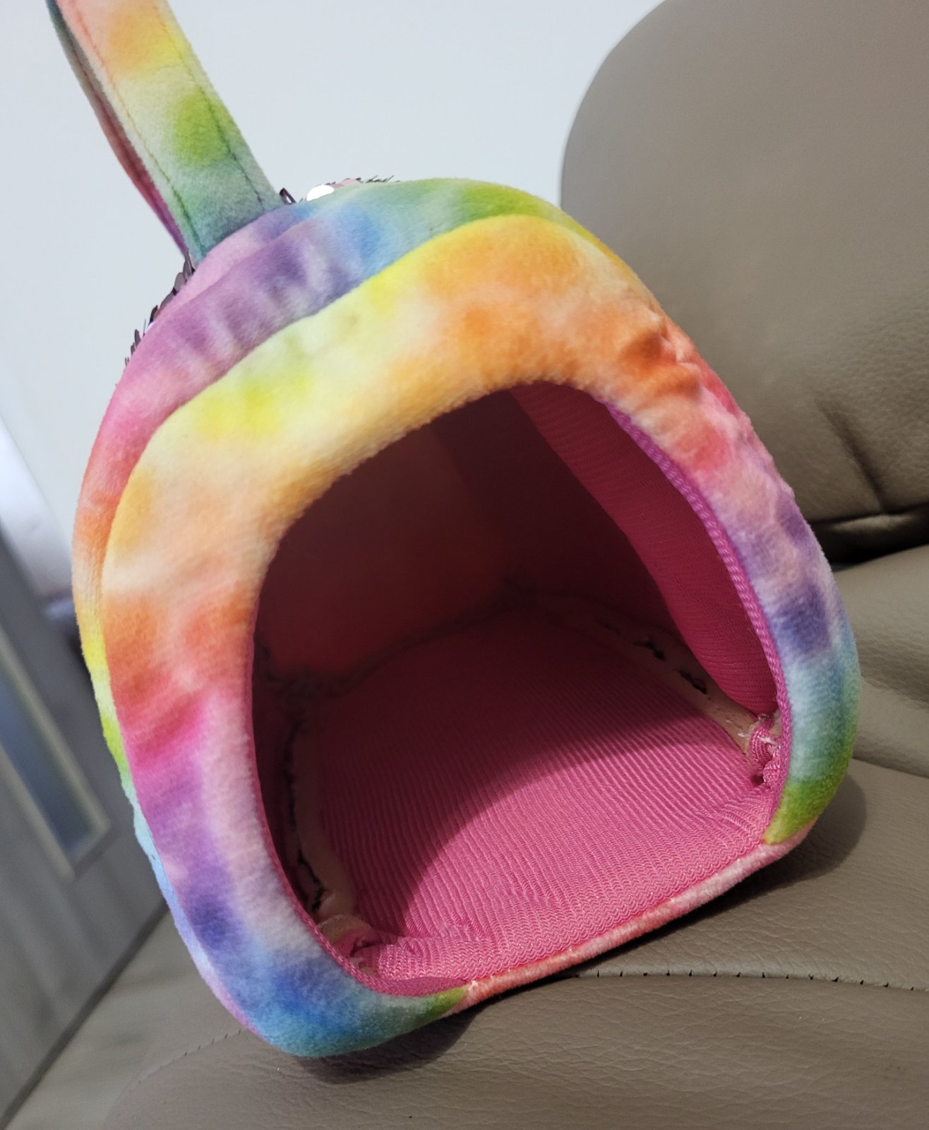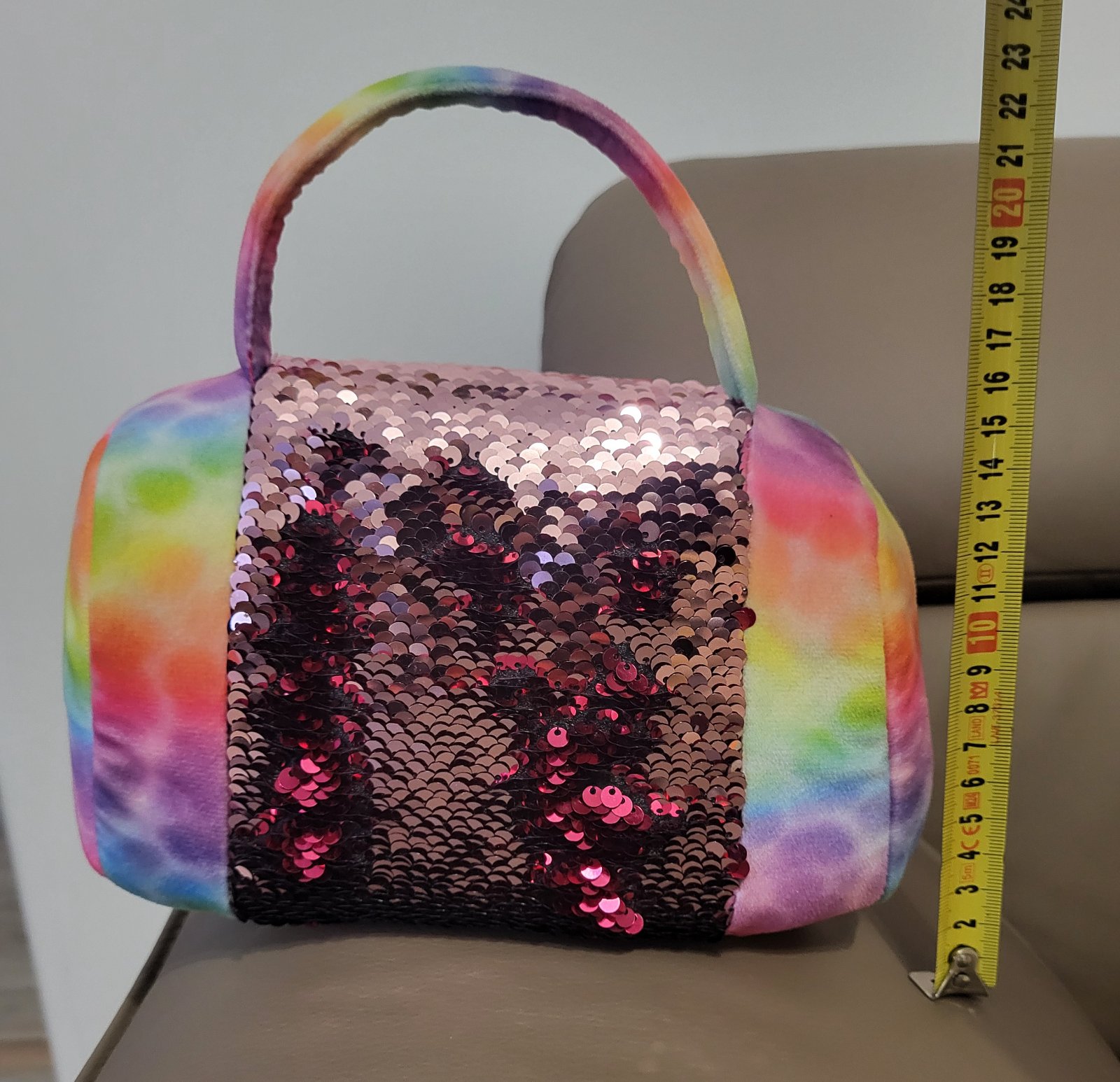 mäkký plyšový psík(Retriever) a farebná taštička s popruhom na prenášanie, taštička je vyrobená z materiálu s dúhovým motívom (tie-dye) a zdobená obojstrannými flitrami a polstrovaná, obe veci bez poškodenia, super stav, pošlem buď poštou alebo packetou