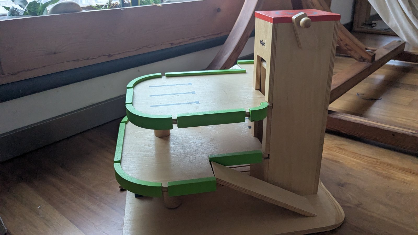 iba na objednávku Farebná drevená šesťdráha. Pusti autíčko z najvyššieho miesta a pozeraj ako ide dole. Balenie obsahuje drevenú dráhu so šiestimi plastovými poschodiami a 4ks autíčok. Výška dráhy...