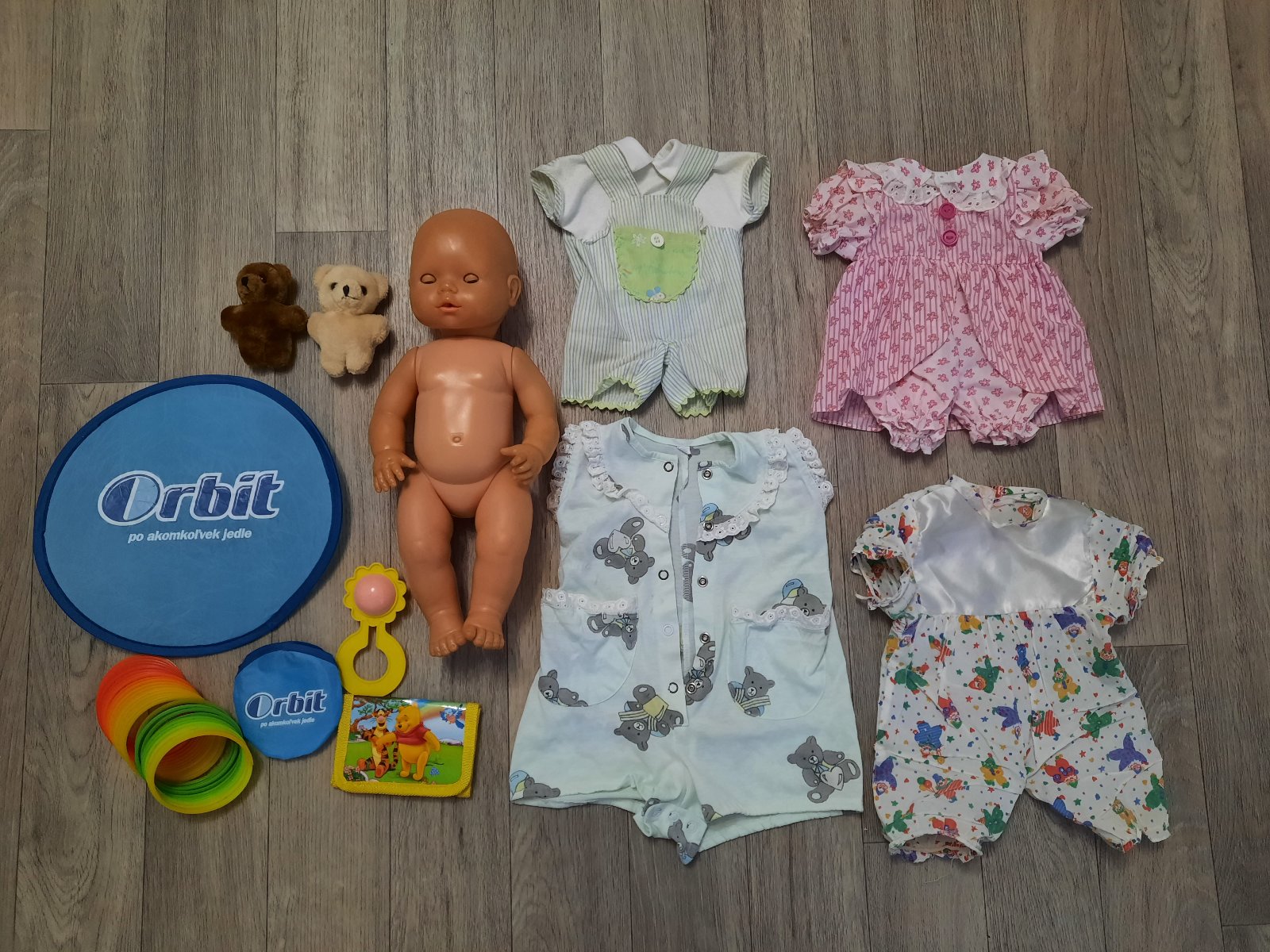 Hraná bábika - maličké bábätko do detského kočíka. Zatvára očká a má mihálnice. S oblečením.
