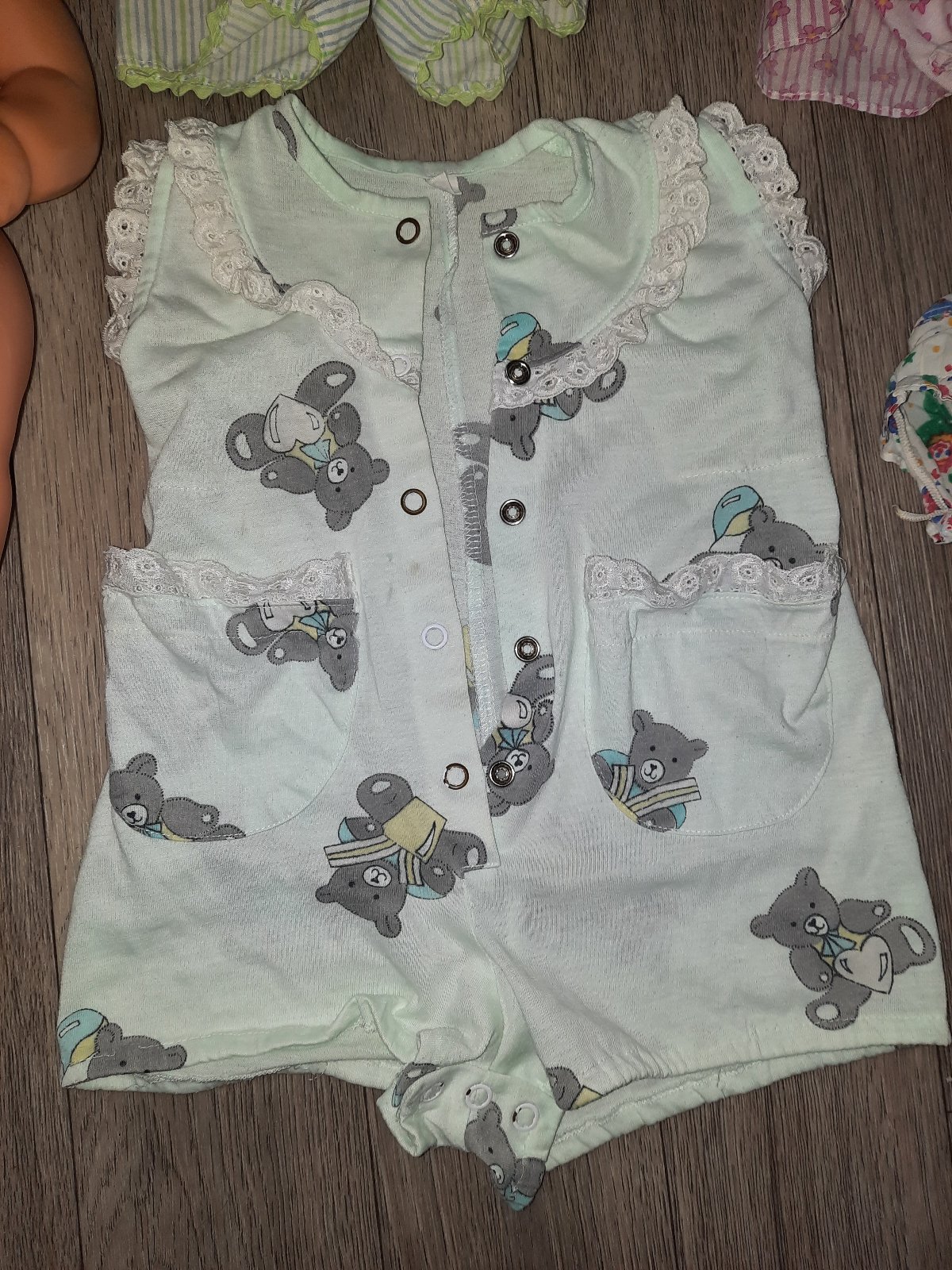Zelené dupačky s medvedíkmi sú pre dieťa, veľkosť 92. Sú nosené a prané.