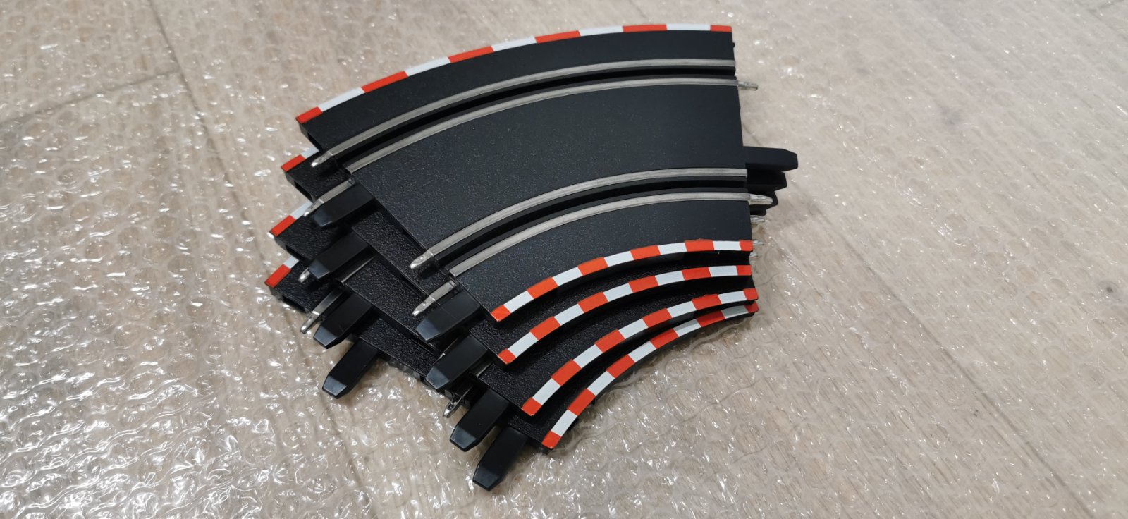 a tiež na digitálnu autodráhu Carrera D143: trafo, ovládače, pripojovací diel, predbiehací diel vpravo, predbiehací diel vľavo, predbiehací diel X, zákruta, rovinka dlhá , rovinka krátka, kríženie X, križovatka, mantinely, looping, kolmá stena, spojky podpery, autíčka...