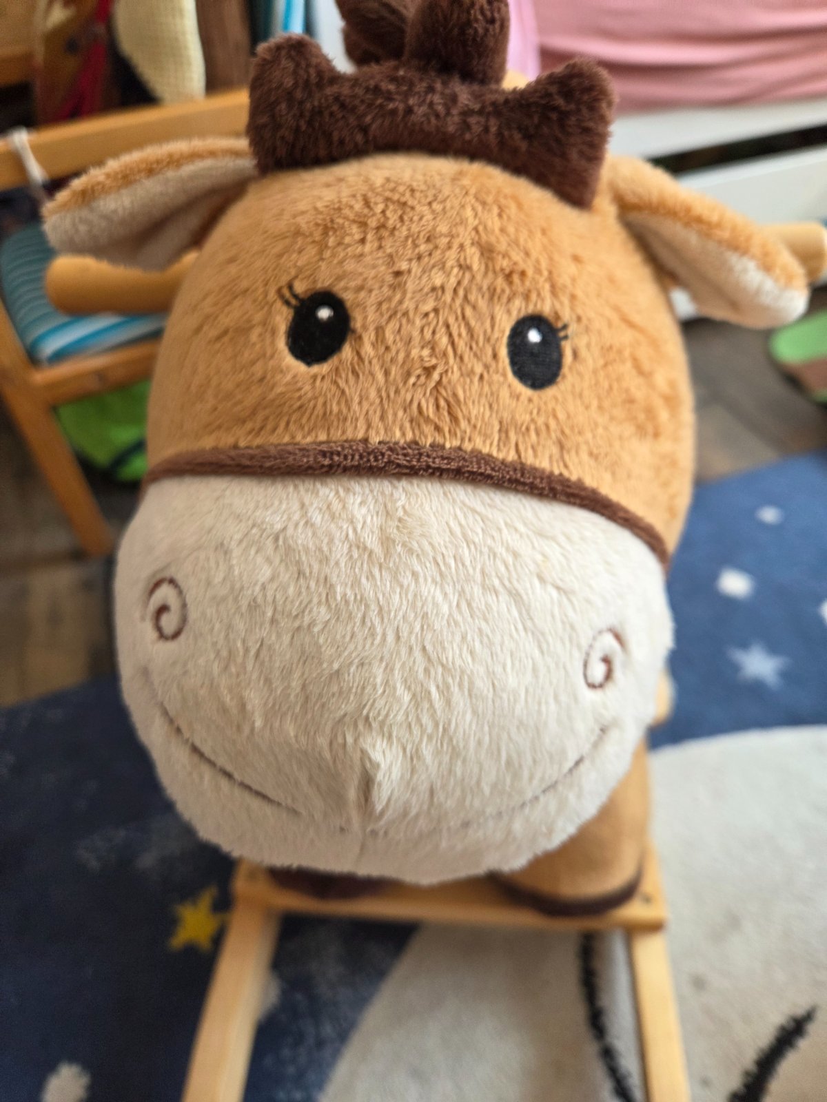 Značka Fisher price. Hrá upokojujúce melódie, bruško sa pohybuje hore dole, lampa svieti, hračka dýcha, bije mu srdiečko. Toto všetko sa dá zvlášť vypínať podľa potreby. Super pomôcka na zaspávani...