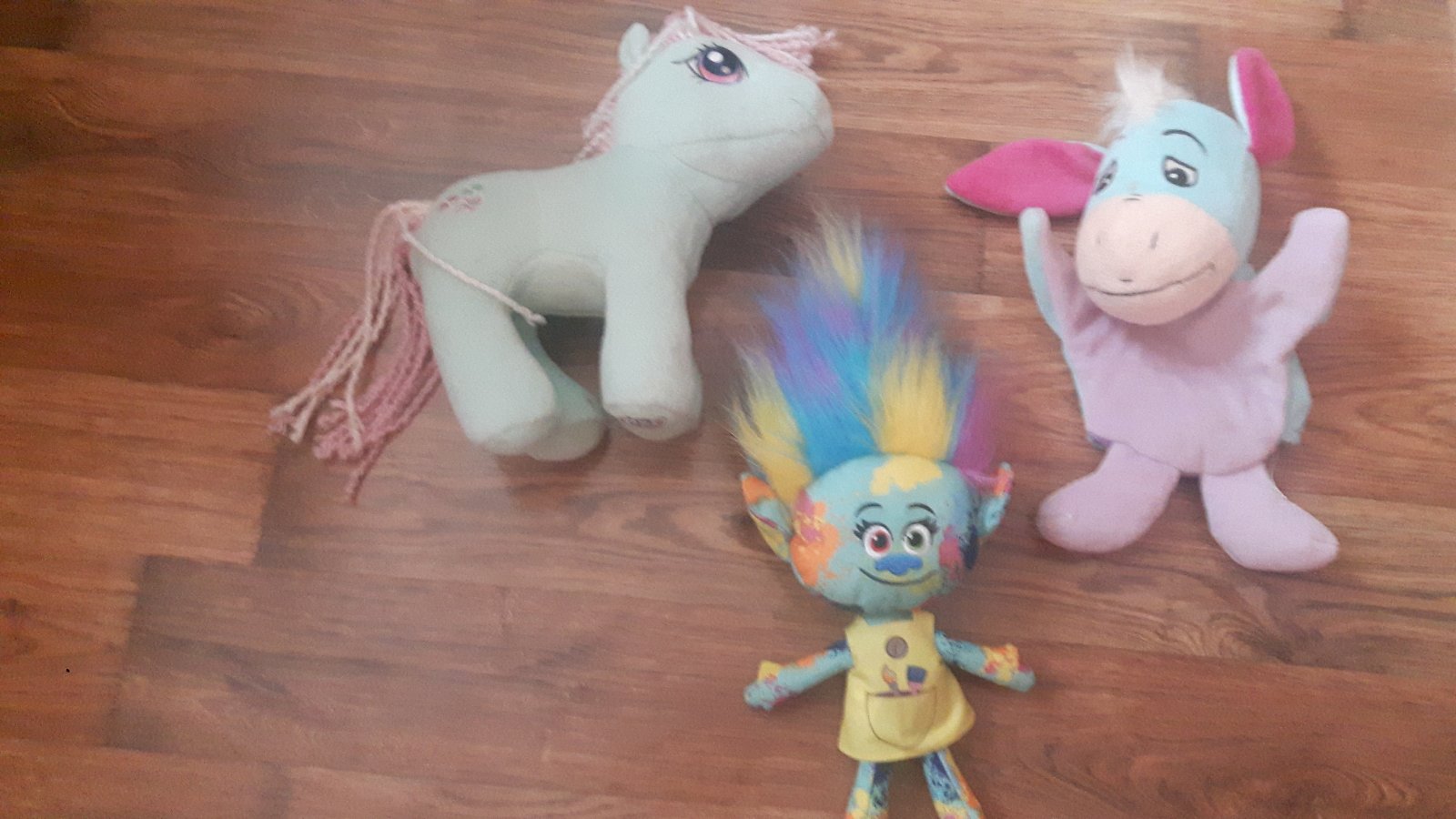 manuska, hrajuci konik (su trosku spinave treba poumyvat)a trolko bol polozeny na policke.cena spolu