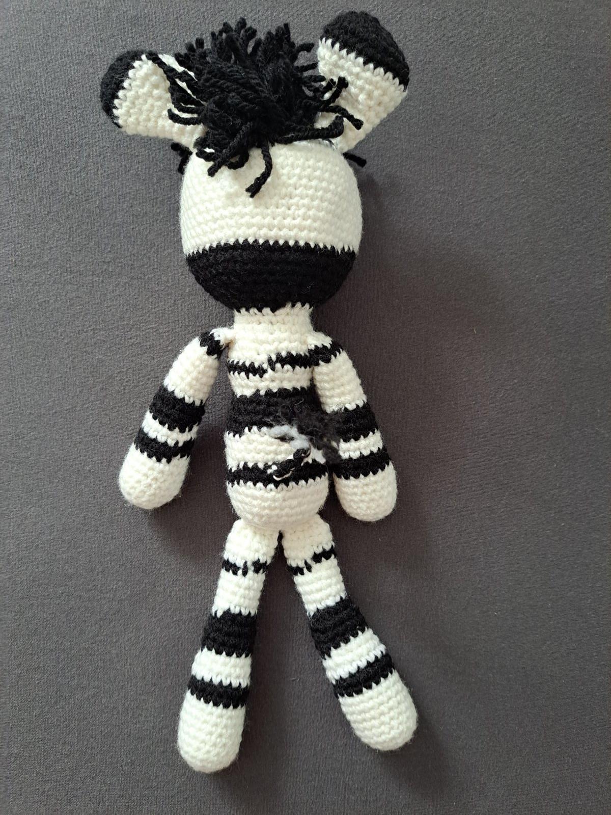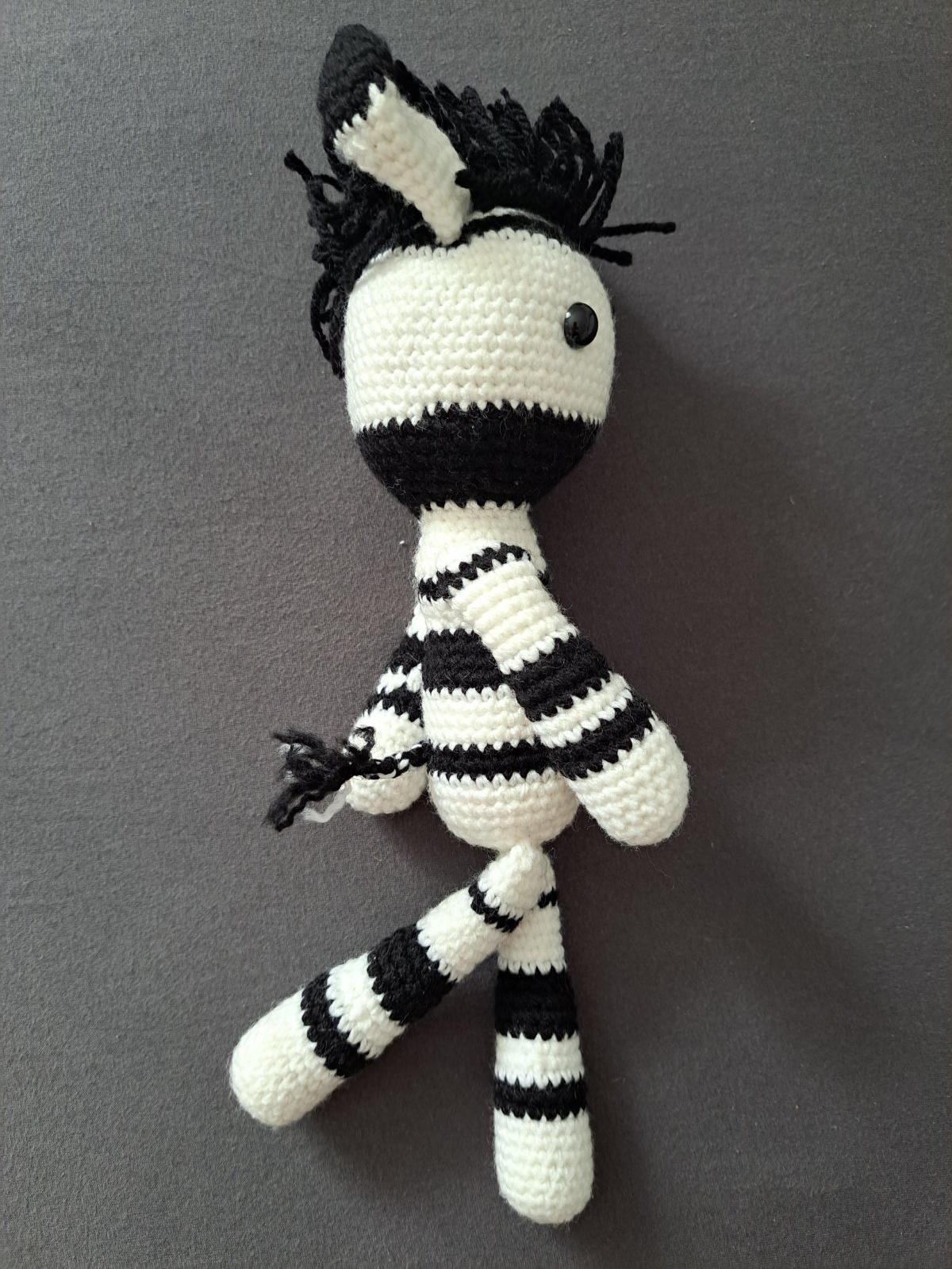 Háčkované z akrylovej priadze, vyplnené antialergickou výplňou do vankúšov, očká sú bezpečnostné.