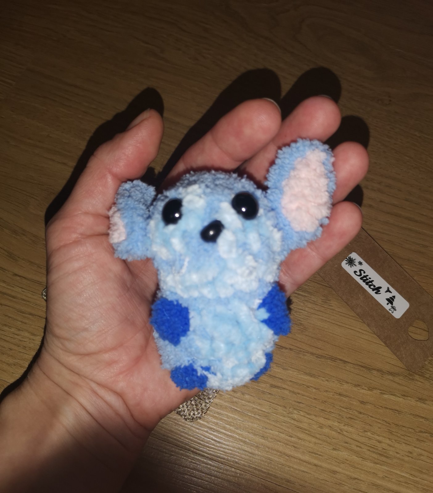 Tento chutny Stitch je uhackovany dcerkou. Ponuka svoje vyrobky na predaj, aby mohla rozvijat svoj talent dalsou tvorbou. Plneny naplnou pre hackovane hracky, vhodne aj ako darcek, nakolko je to darcekovo balene. Velkost ako dlan, vhodny ako mojkacik, alebo privesok na ruksacik do skolky, ci skoly.