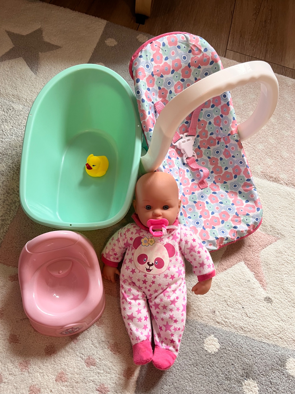 Babika je uplne nova ako je na fotkach. 36cm vyska ,vhodna od 1roka dietata. Nevhodny darcek.